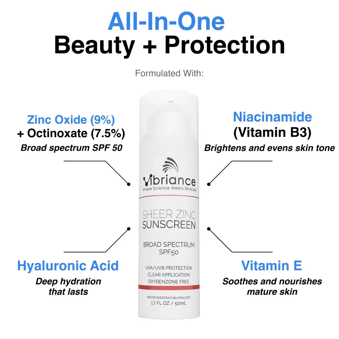 I’ve never been good about using sunscreen in daily face care until I got older.The Vibriance Super Zinc Sunscreen checks all the boxes for me! Protection in a light weight foundation. Thank you Vibriance for another great product!