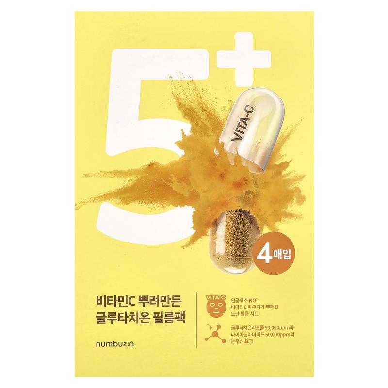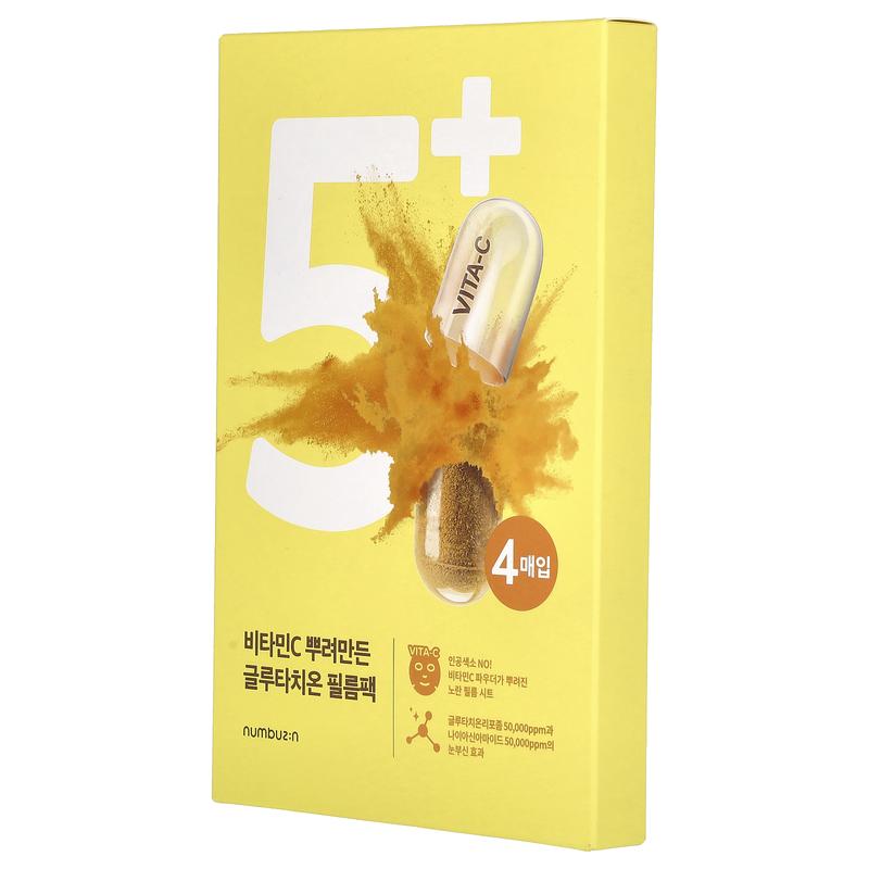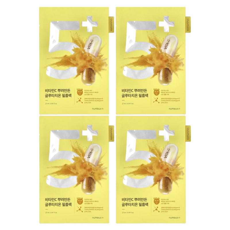Numbuzin No.5 Vitamin Spotlight Beauty Sheet Mask, 4 Sheets, 0.91 fl oz (27 ml) Each