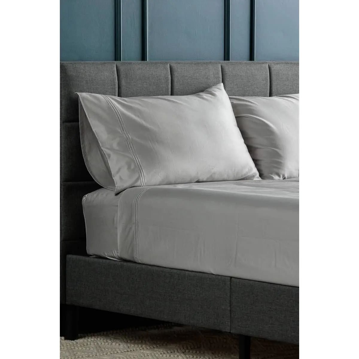 Fabric construction matters. Our long-staple cotton & sateen weave are durable and yet luxurious. This set is 400 thread count making it substantial and lightweight. It has a slight sheen that adds richness to your oasis.