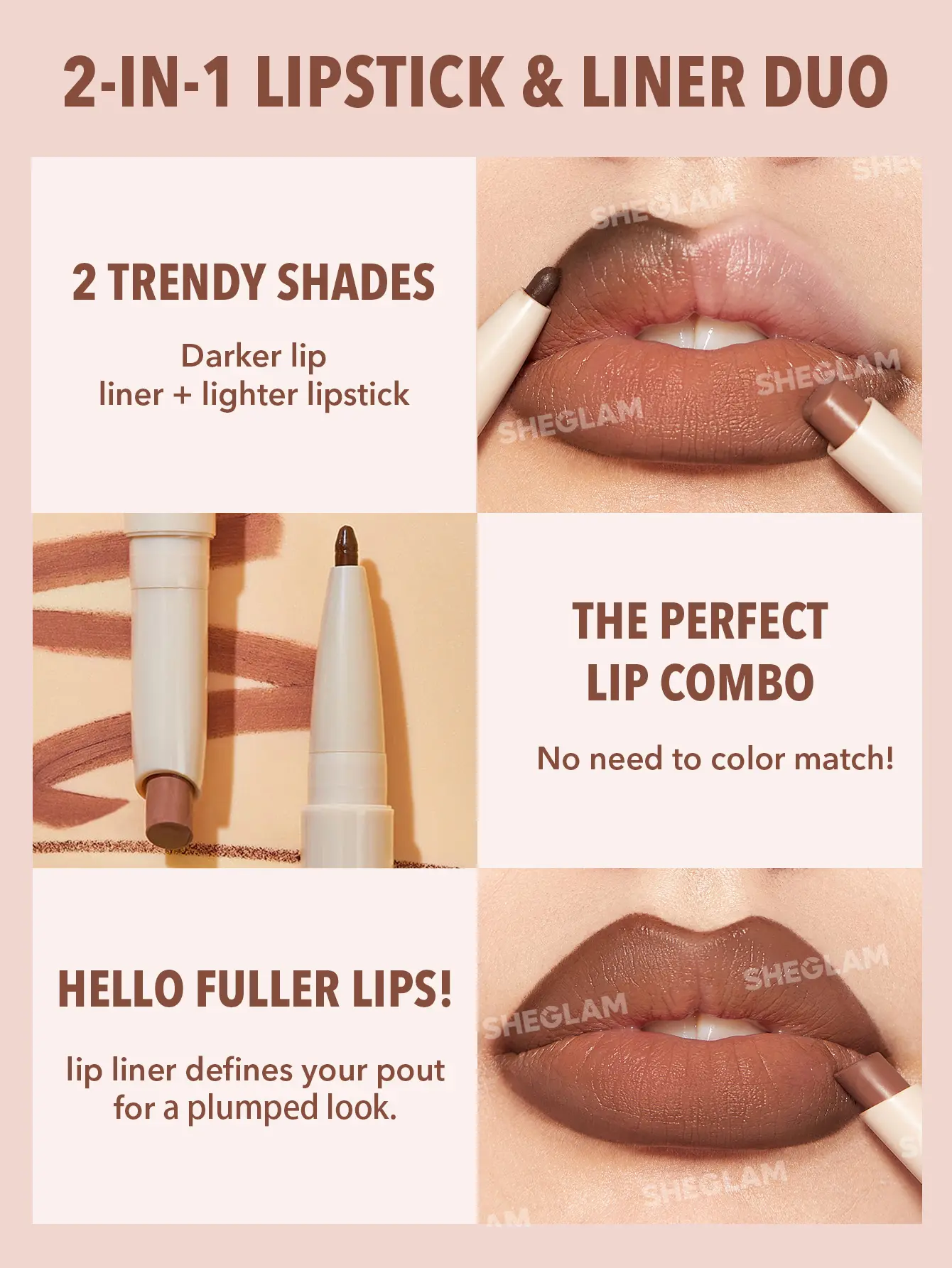 SHEGLAM GLAM 101 Lipstick & Liner Duo-DEEP CARAMEL Matte Nude Makeup Lipliner-Effortlessbeauty