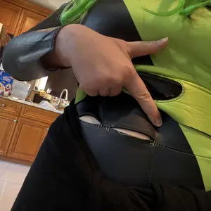 Smart and snazzy is the name of the game when it comes to this licensed Shego jumpsuit from Kim Possible! The green and black uniform has just the right stretch. One green and one black boot cover can be worn with your own heels while a little pouch straps around one calf. The high-neck has a gray faux gem at the neck. The look is polished off with one green and one black glove and a belt around the waist. Pairing perfectly with a long black wavey do, black lipstick, and a sassy attitude, this costume is sure to cause some devilish plot thinking.