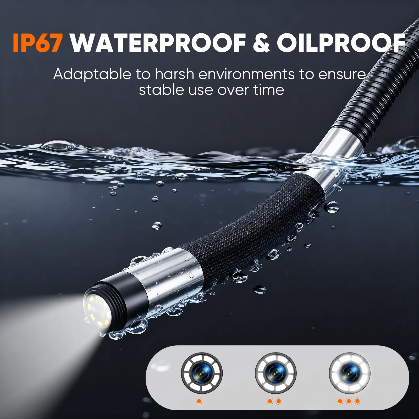 The IP67 waterproof camera and probe make this endoscope ideal for oily, wet, or dusty environments. Its semi-rigid metal gooseneck provides excellent flexibility while maintaining its shape for stable viewing, allowing you to reach and inspect anywhere with ease.