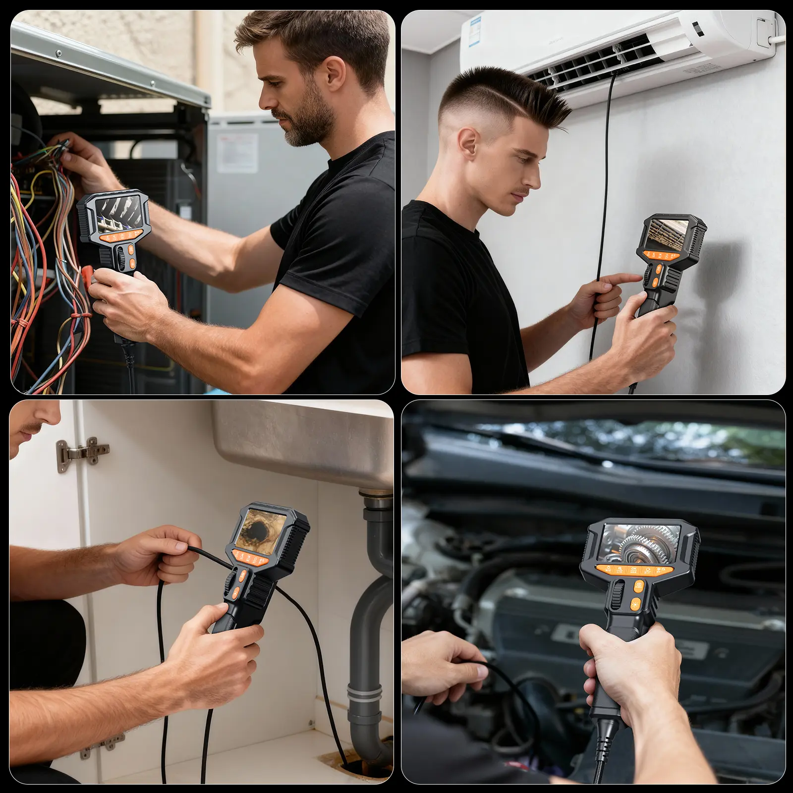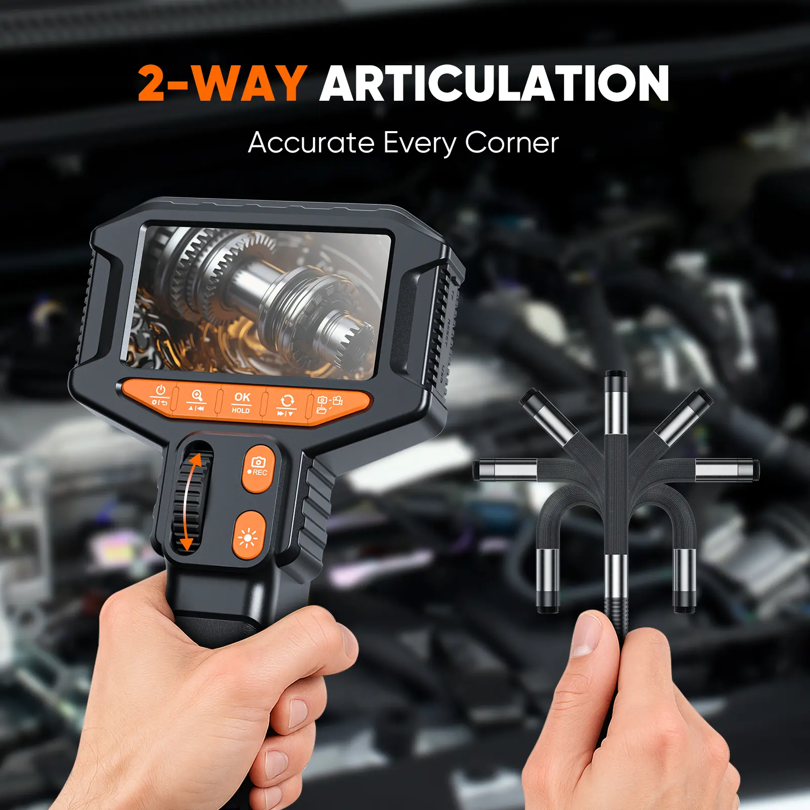 Equipped with a 4.3-inch IPS screen and an AI-enhanced chip, The smart system automatically adjusts brightness and contrast for optimal clarity under different lighting conditions. Perfect for inspecting engine cylinders, valves, pipes, and more.