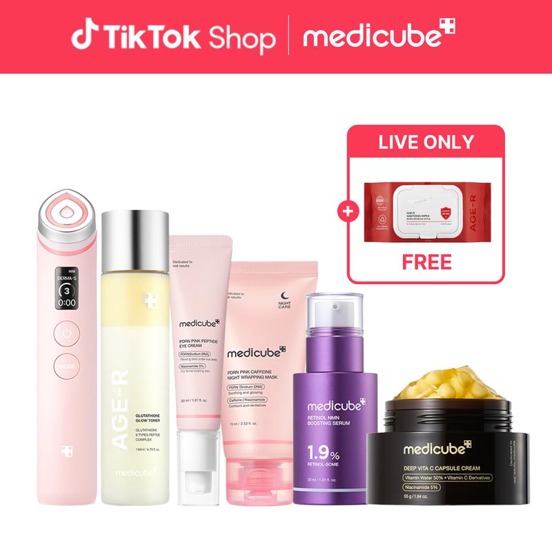 Featuring the exact medicube products she personally uses and swears by to keep skin smoother, firmer, and visibly more youthful. Perfect for early signs of aging, loss of elasticity, and dullness—rewind the look of fine lines and boost your glow for effortless, youthful-looking skin!
