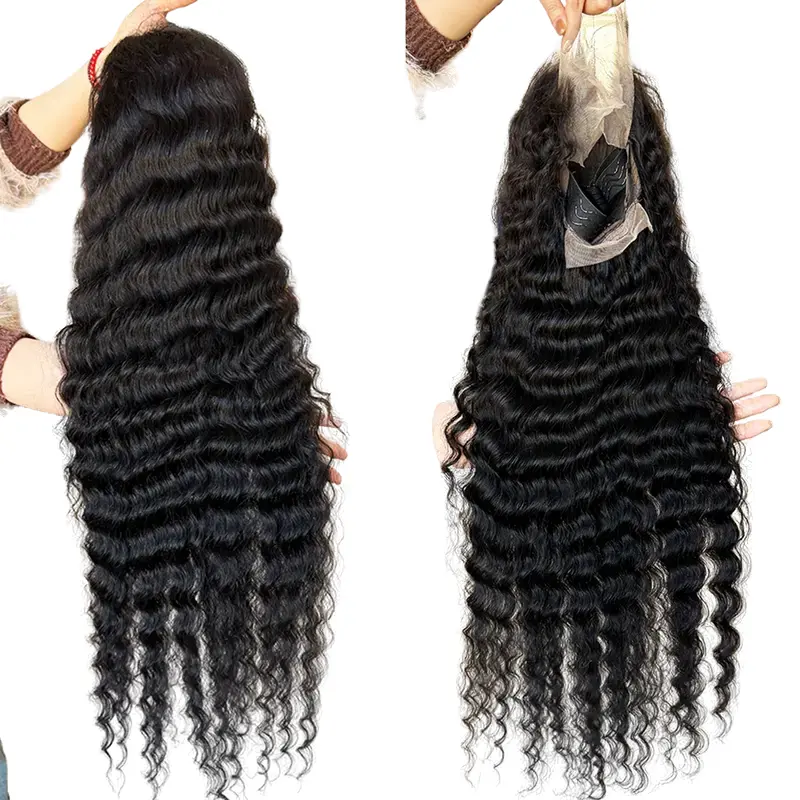 This deep wave lace closure wig is made from 100% human hair. It features no strange smell and is true to length. Available in sizes 13X4 and 5x5. The wig weighs 220-320g, depending on the length. It is full, thick, and pre-plucked with baby hair. The density is 180%, offering luxurious fullness and softness. The hairline is pre-plucked for a natural look.