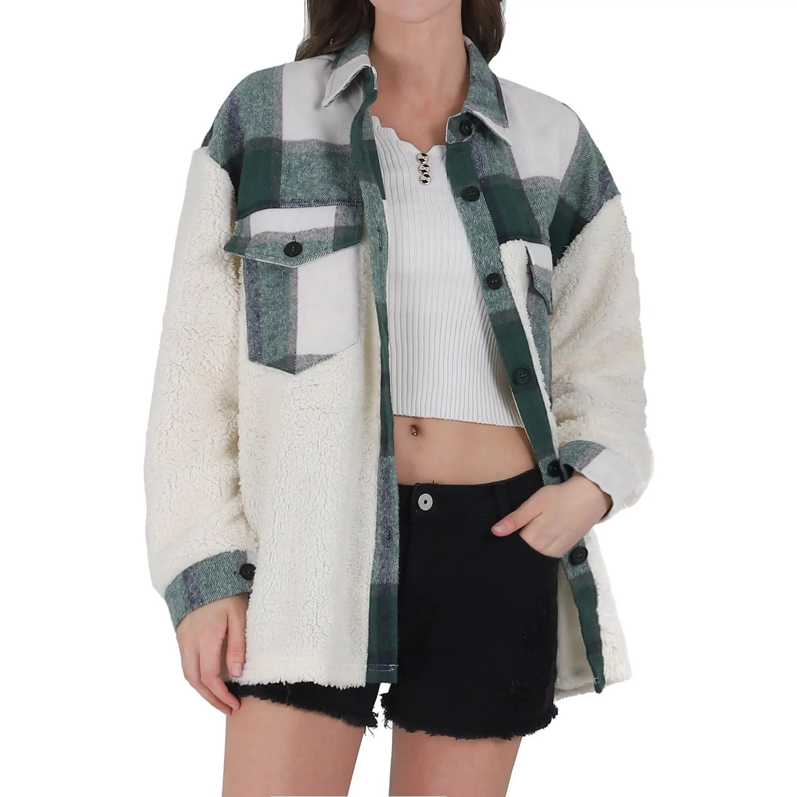 ·Thermal winter plaid shacket for women, featuring unique fluffy sherpa fleece splicing at front and sleeves. Provides extra warmth in chilly days. Pair it with jeans, skinny pants, leggings, or ankle boots for a chic look.