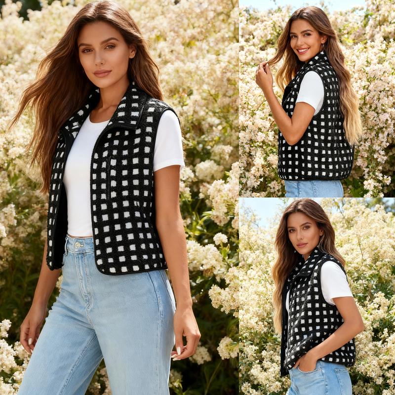Trendy fleece vest for women, women plaid sherpa vest is crafted with a soft, fuzzy fleece that offers warmth without the bulk