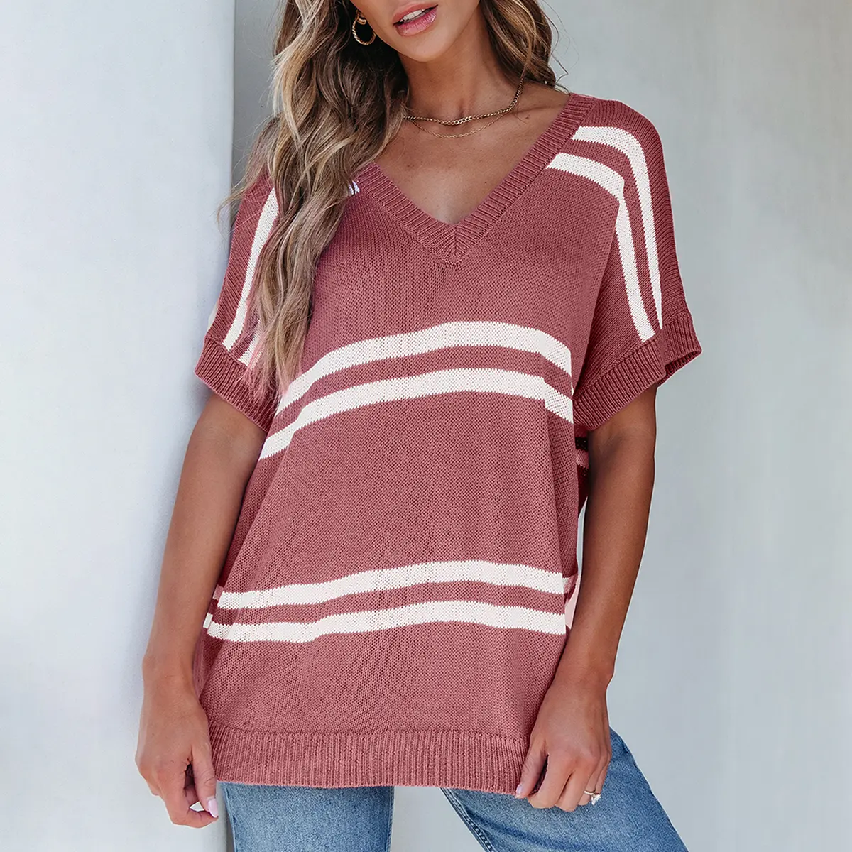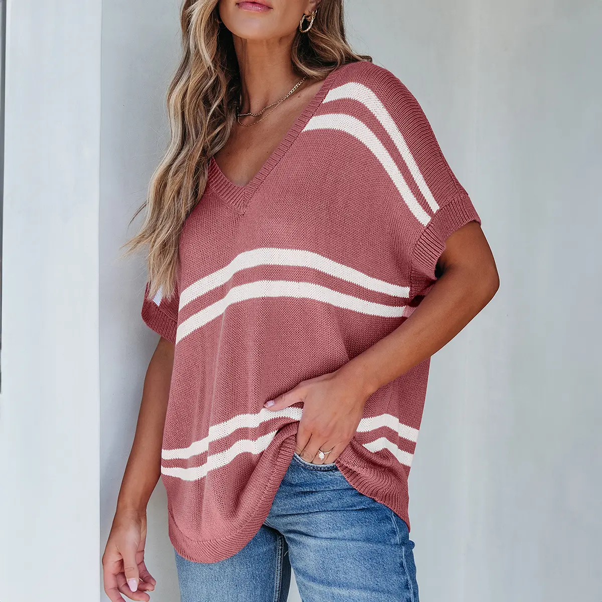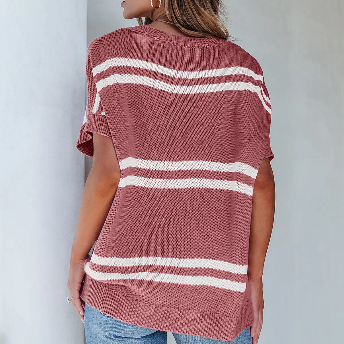 Oversized drop-shoulder style with striped elements makes these sweaters a chic choice. The crewneck design is gentle on your neck, ensuring comfort during movement. It's ideal for various body types, providing a fashionable look. The design enhances your style effortlessly.
