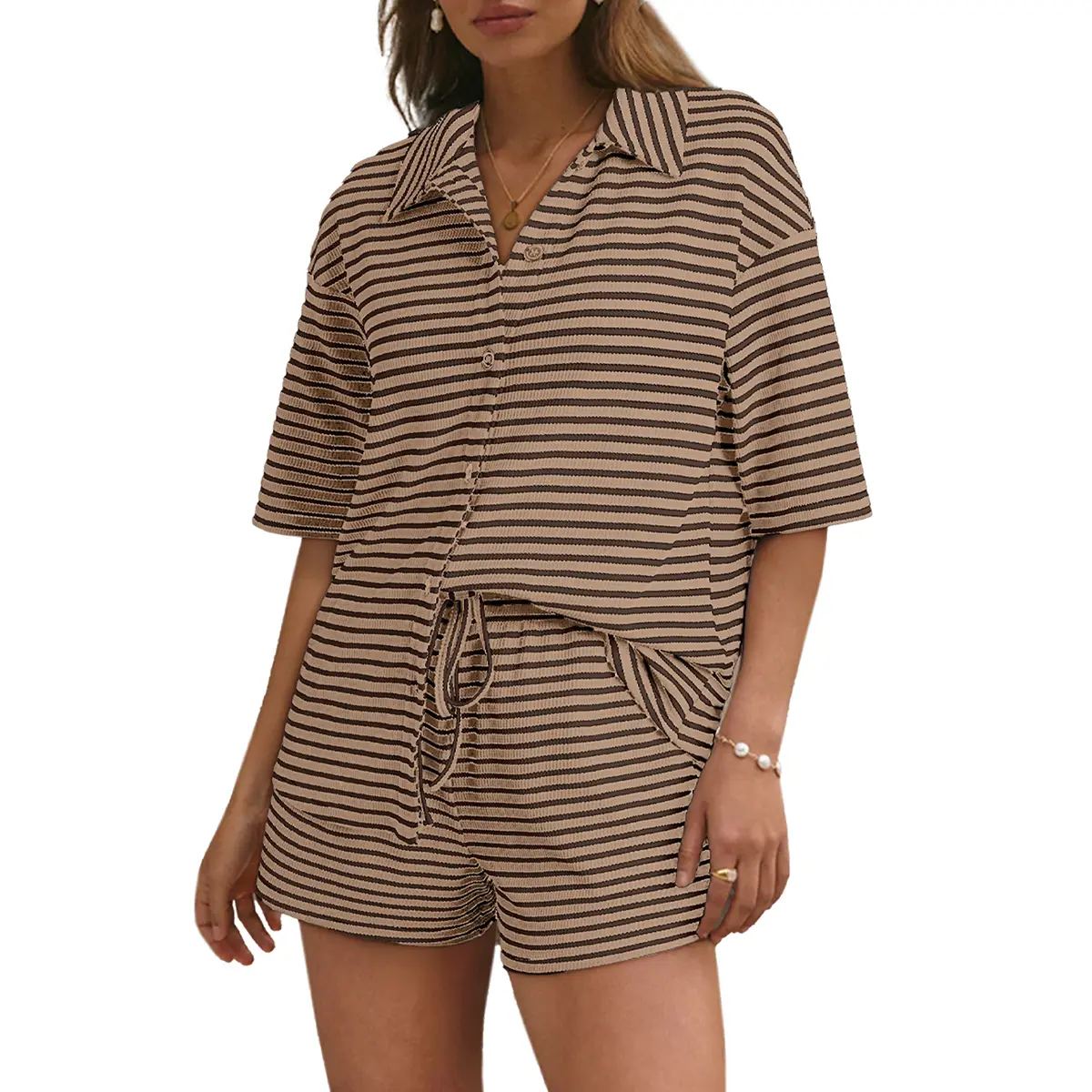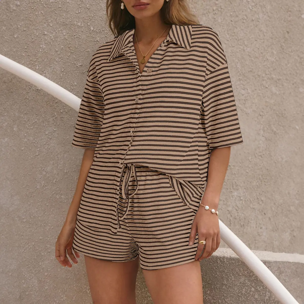 This set is super cute and I cannot wait for it to warm up so I can wear it. I already know that it will be a go-to outfit for me this summer! Obsessed the neutral brown tones!