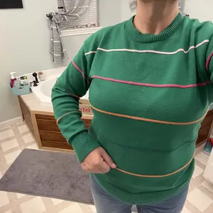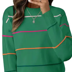 SHEWIN Crew neck sweaters feature a stylish striped design and a relaxed fit. The knit pattern adds texture and charm. Available in various sizes, they provide a flattering fit for every body type. Ideal for casual and office wear. 👗