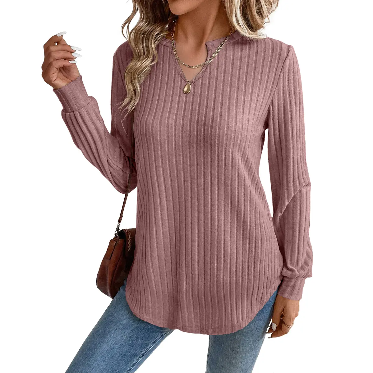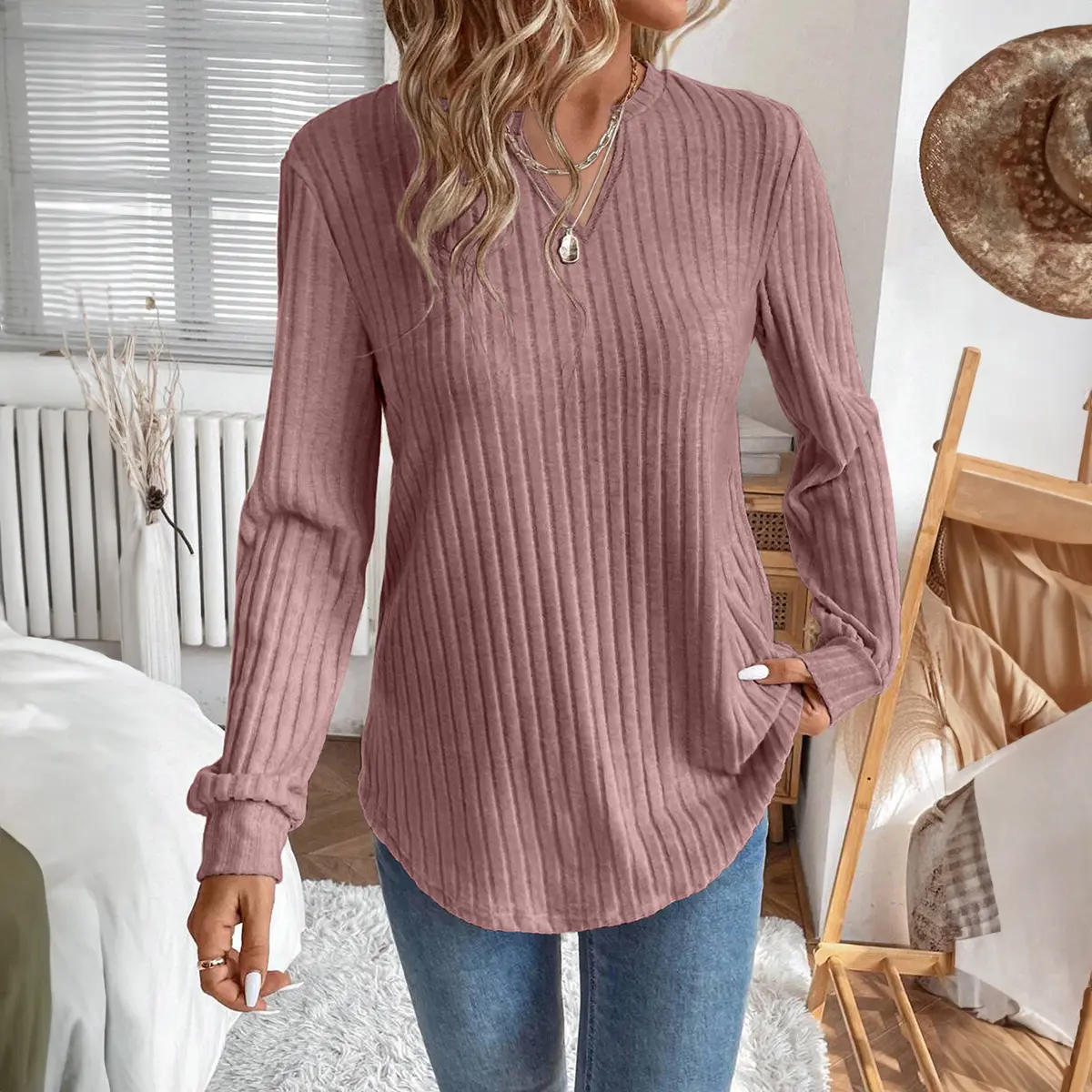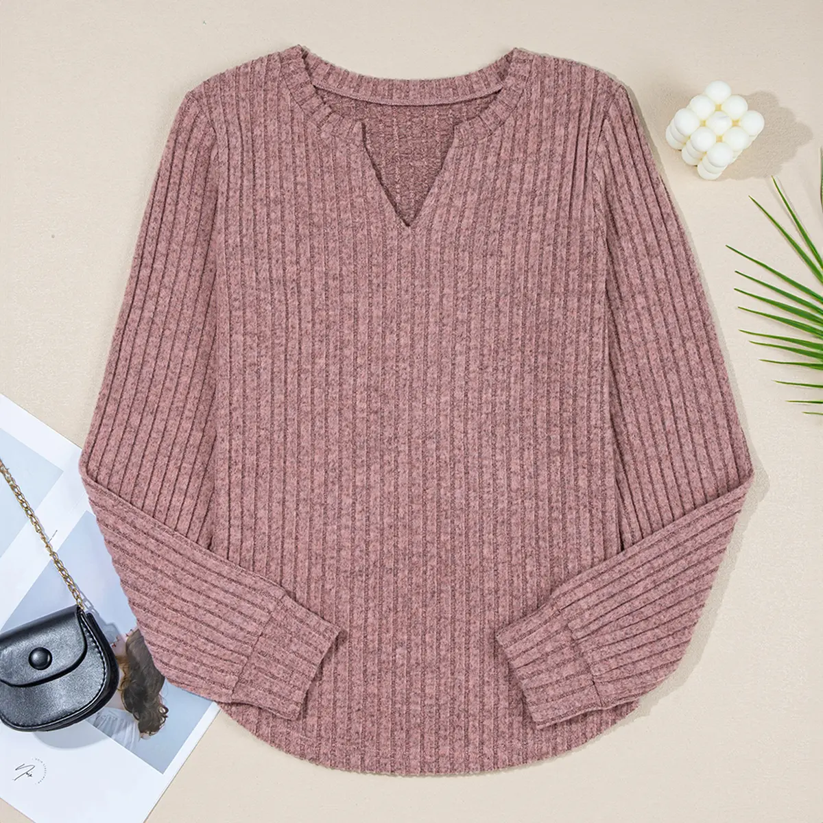 Very soft and cozy v-neck top. This is not solid color and has black/gray swirled in which does not show well in the picture.