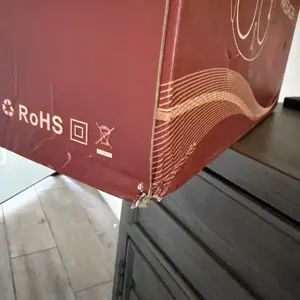 Product was delivered in an open box with punctured holes in it and Ever corner damaged.
