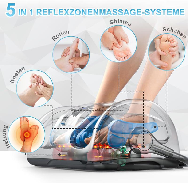 ·【Smart Reflexology System】This foot massager is equipped with 4 simulated hands, 8 rollers, and 74 nodes, which mimics massage techniques (kneading, scraping, rolling, and more) by a massagist; It also meets all your needs by variable intensities-rotations and time setting(5-30min) for the more authentic experience