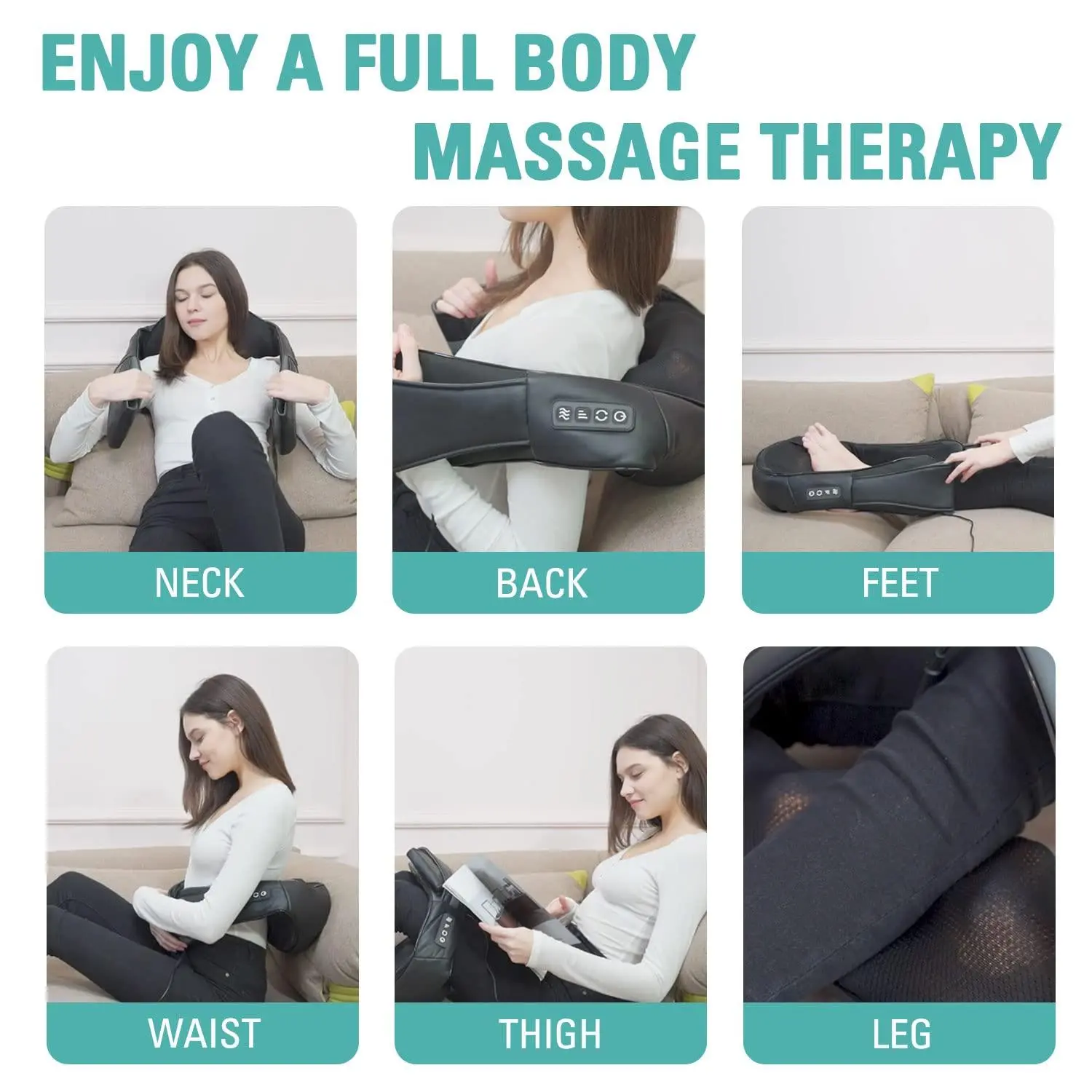 DEEP TISSUE KNEADING MASSAGE: The Shiatsu massager replicates the experience of a professional spa with its deep, kneading motions. Equipped with advanced rotating nodes, it effectively targets muscle knots and soreness caused by workouts, injuries, or daily stress.