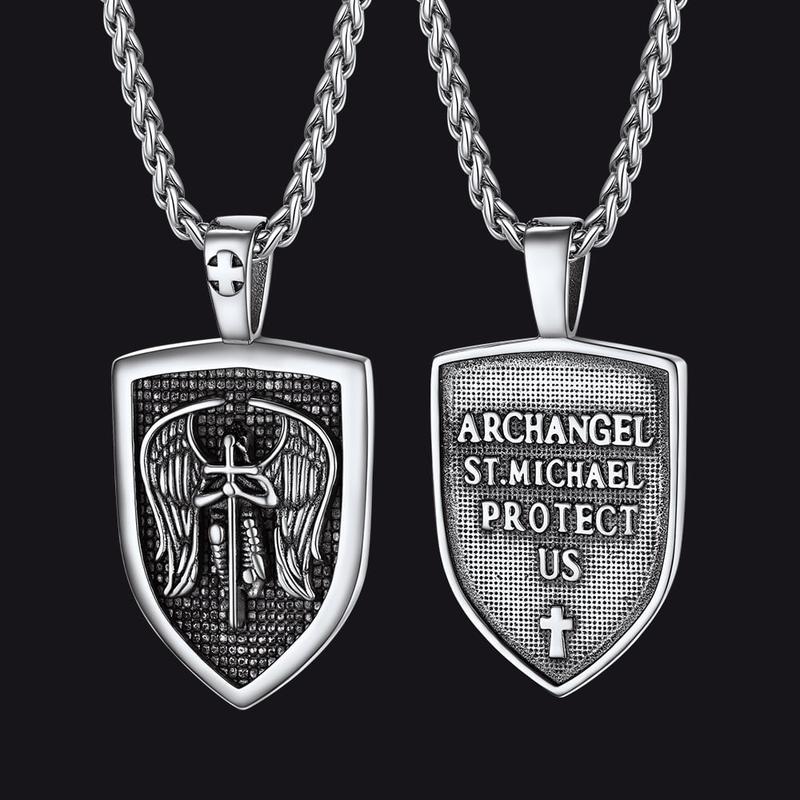 ·Saint Michael Spiritual Talisman: Catholics often refer to Michael as "Holy Michael, the Archangel". He is the leader of the Army of God; Helper of the sick and dying; Defender of the poor souls; Guardian of the blessed sacrament and the Pope. This necklace is a sacred medallion that protects us from evil and brings good luck. Saint Michael Protect Those Who Protect Others.