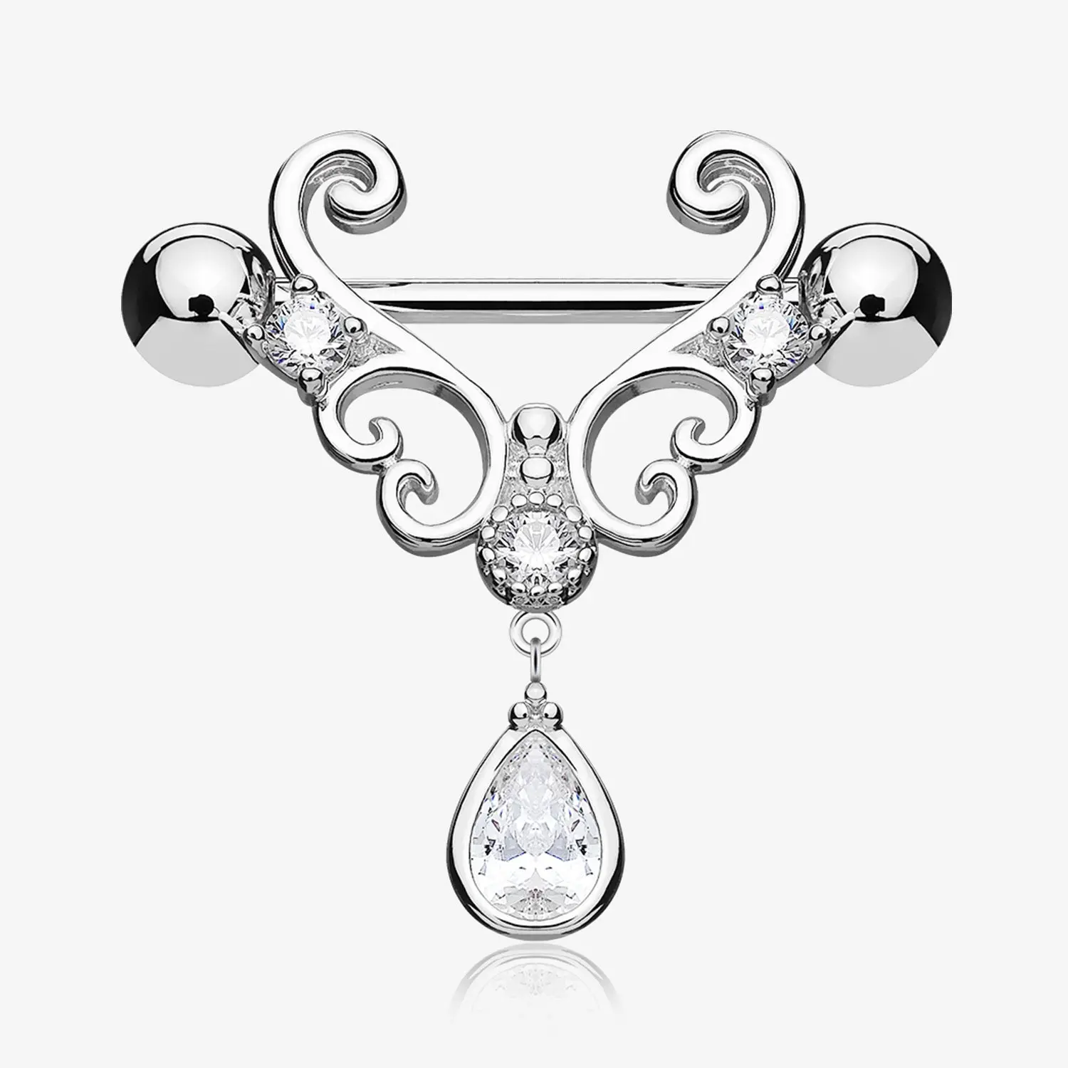 Get the VIP treatment with this pair of royal heart sparkle dangle nipple shields! Show your nipples some love with this luxurious and glamorous accessory - perfect for piercing enthusiasts who wanna make a statement while lookin' like royalty. Glitzy and sassy!