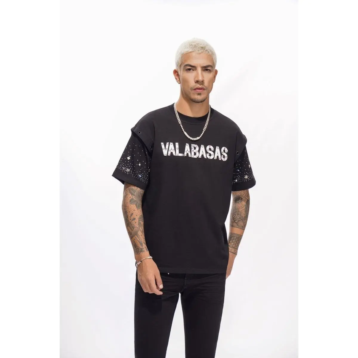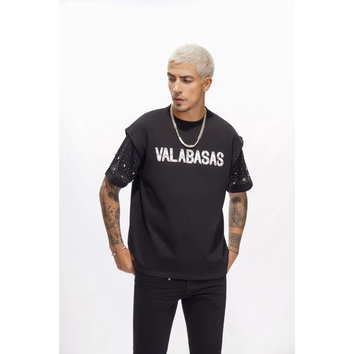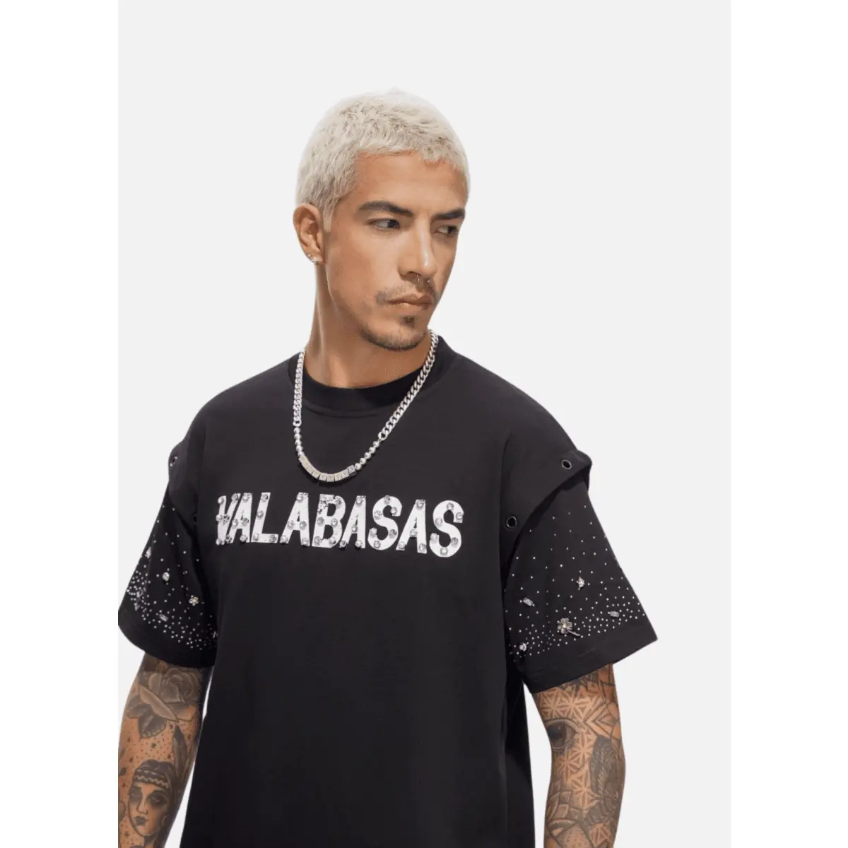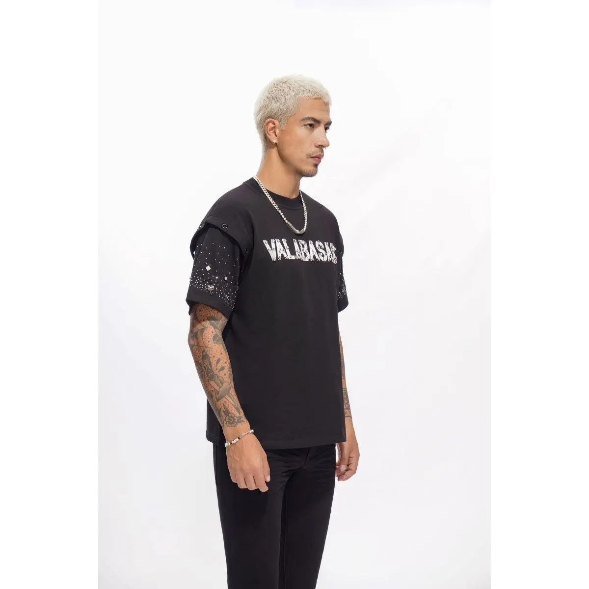 black graphic tee, statement streetwear t-shirt, Valabasas graphic tee, distressed black tee, abstract face t-shirt