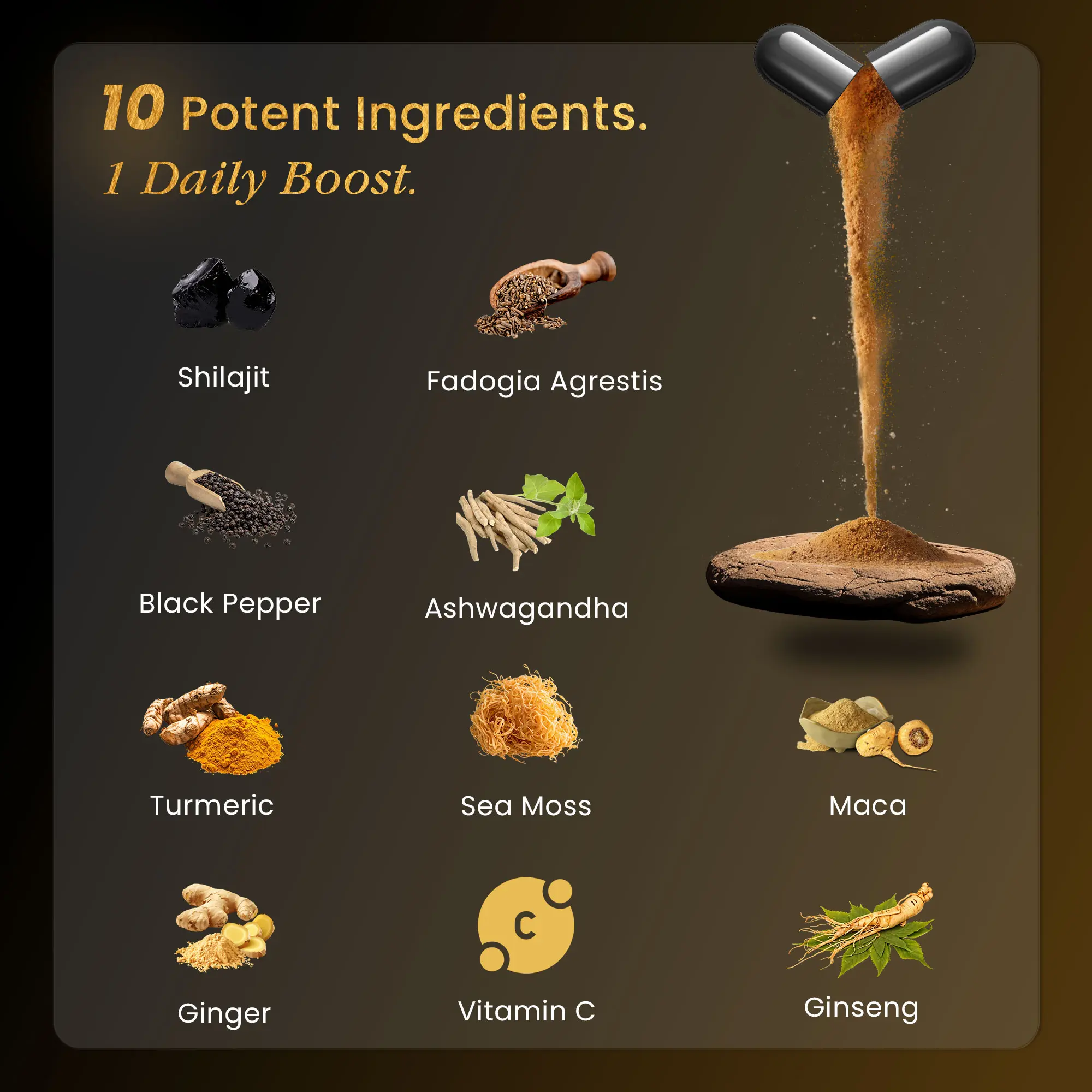 High-Potency Shilajit Formula – Each serving delivers 16,000MG of powerful vitality boosters, including Shilajit, Ashwagandha, Ginseng, and Maca for enhanced energy, stamina, and overall well-being.