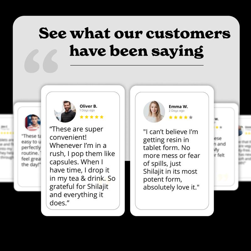 ·Convenient and no-mess, our Shilajit Dry Drop Tablets are travel-ready, making it easy to take your Shilajit wherever you go. Enjoy the benefits of pure Shilajit on the go—no spills, no fuss.