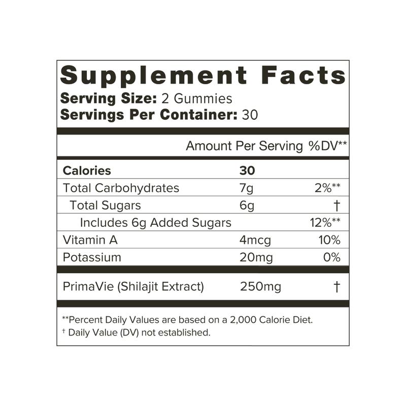 ·Contains 250mg of PrimaVie® Shilajit per serving