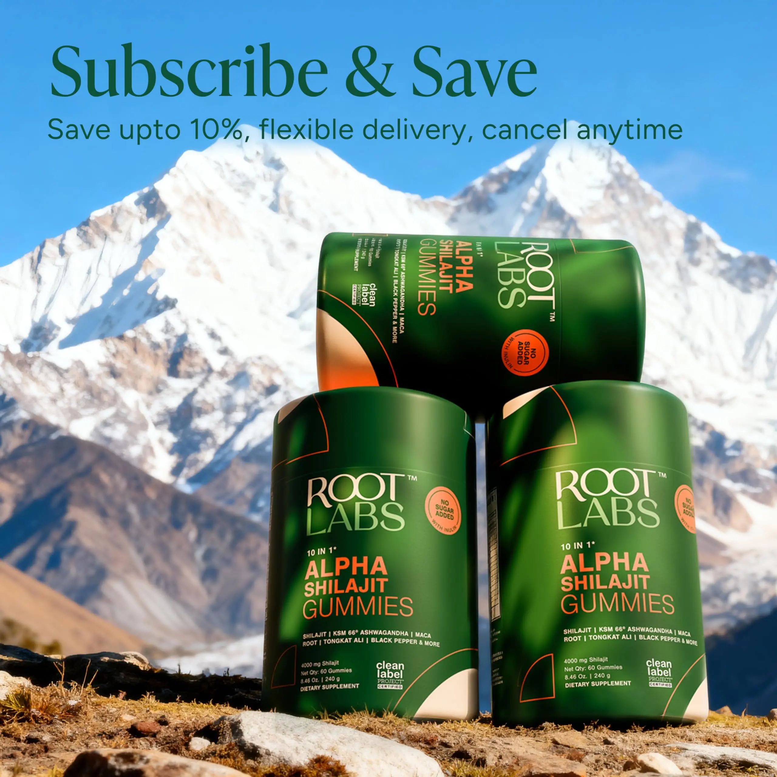 Start 2026 Strong with Root Labs' Alpha Shilajit Gummies — the perfect New Year new you companion for achieving your 2026 fitness goals and health transformation. This New Year New You edition delivers the same steady energy, calm focus, and everyday vitality Root Labs has been known to deliver in a zero-sugar, vegan format. Support your New Year's resolution with a supplement people will actually stick with—each gummy combines fulvic-rich Himalayan shilajit (4000 mg) with KSM-66 ashwagandha, tongkat ali, maca, and trace minerals — individually wrapped for on-the-go convenience as you transform into a healthier, stronger version of yourself.