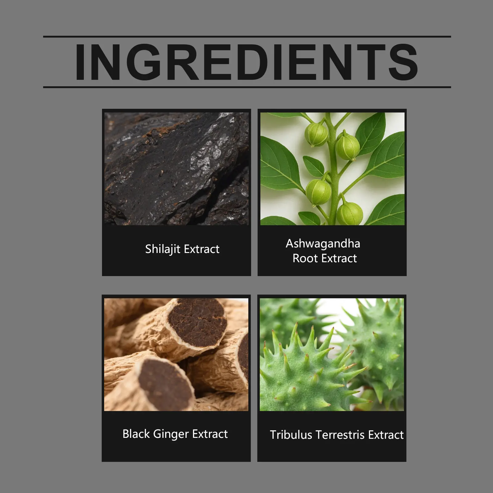 Our Shilajit Gummies are carefully formulated with Shilajit extract and Ashwagandha root extract. They are specifically designed to enhance endurance, provide long-lasting experience, relieve stress, and promote relaxation. Usage is extremely convenient: take 2 capsules a day and chew them. Moreover, they can improve performance, boost vitality, balance body and mind, and promote a healthy life