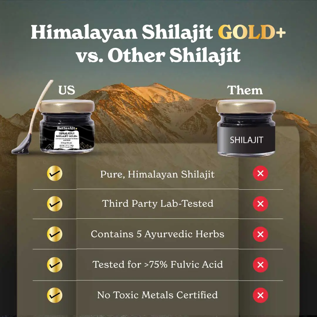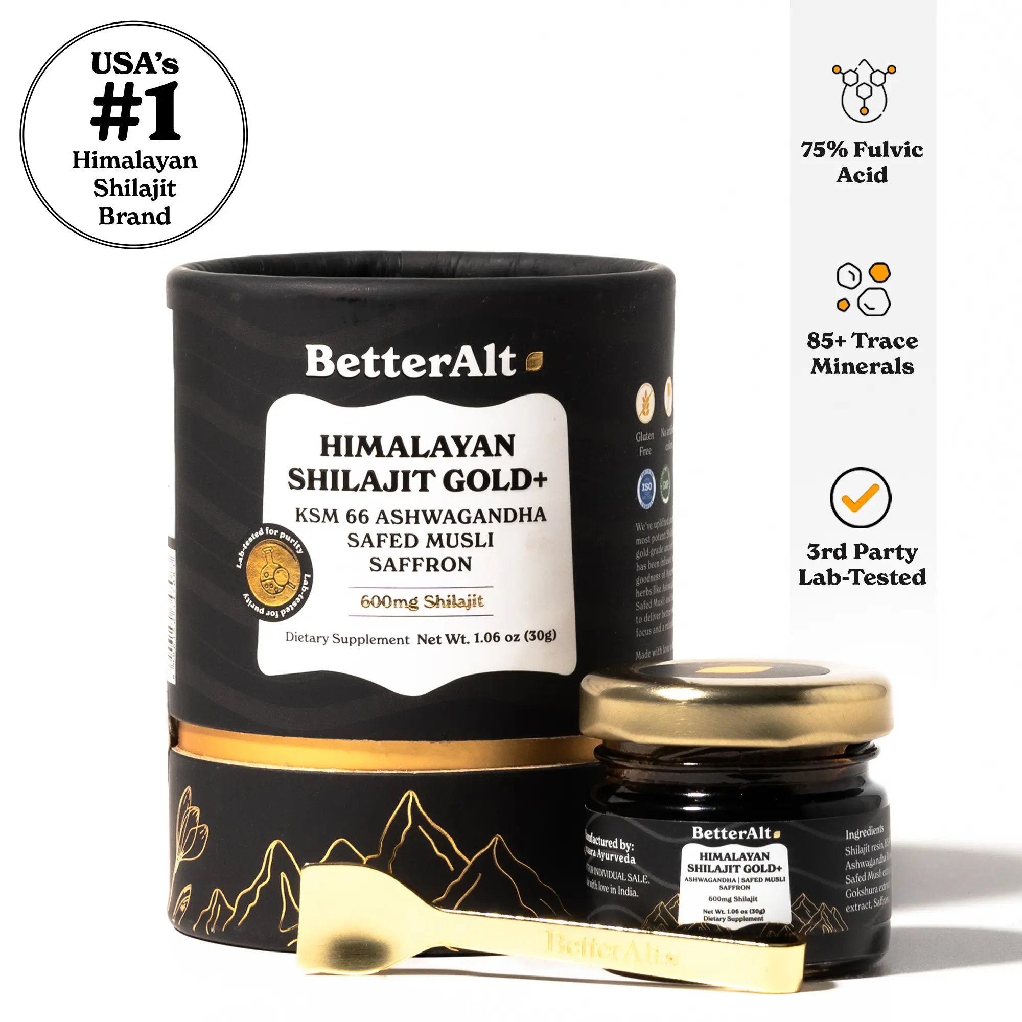 BetterAlt Shilajit GOLD+ is an enhanced version of our original Shilajit resin, enriched with Ayurvedic ingredients to help with your wellness journey.
