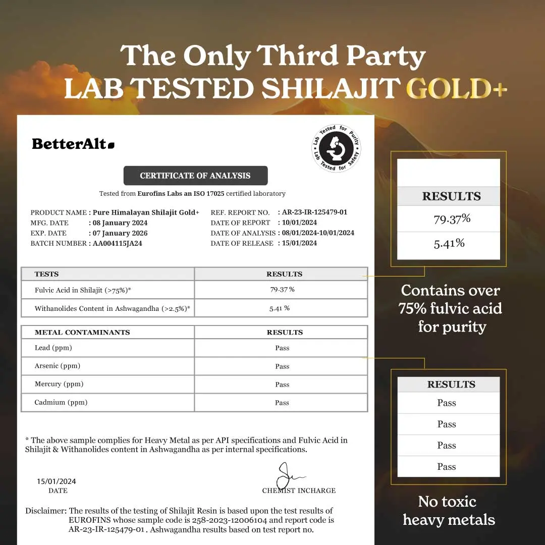 ·Shilajit GOLD+ is lab-tested for purity and contains no heavy metals, fillers, and additives.