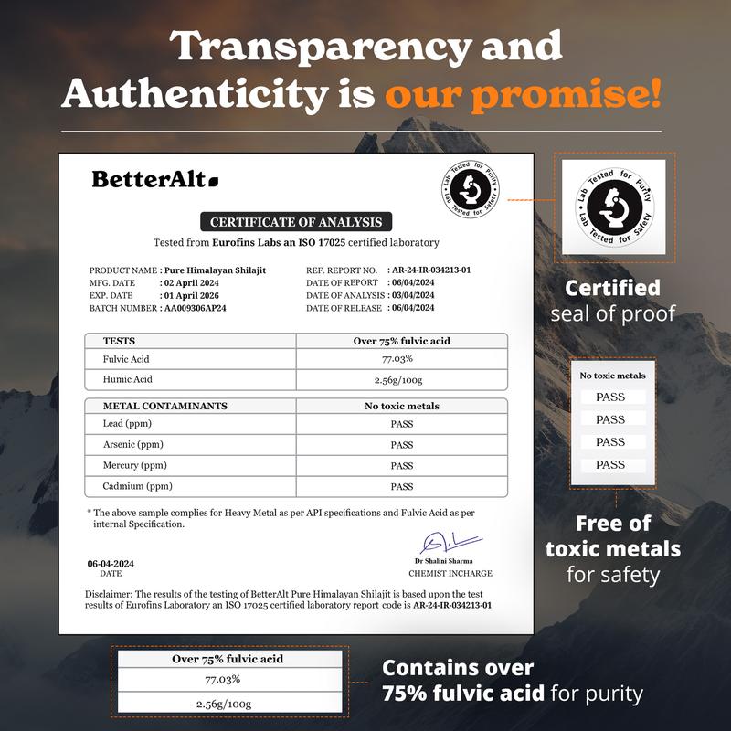 ·Our Himalayan Shilajit is lab-tested for purity and contains no heavy metals, fillers, and additives, and is suitable for vegans.