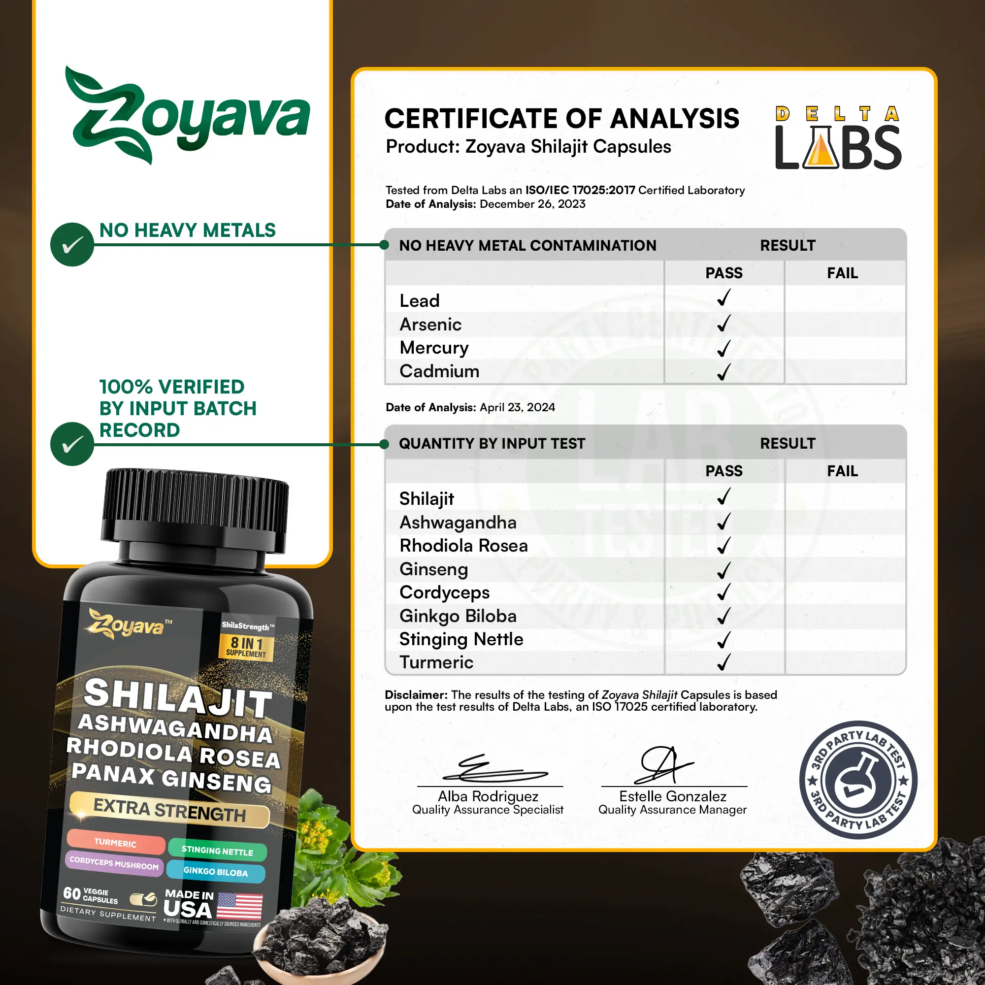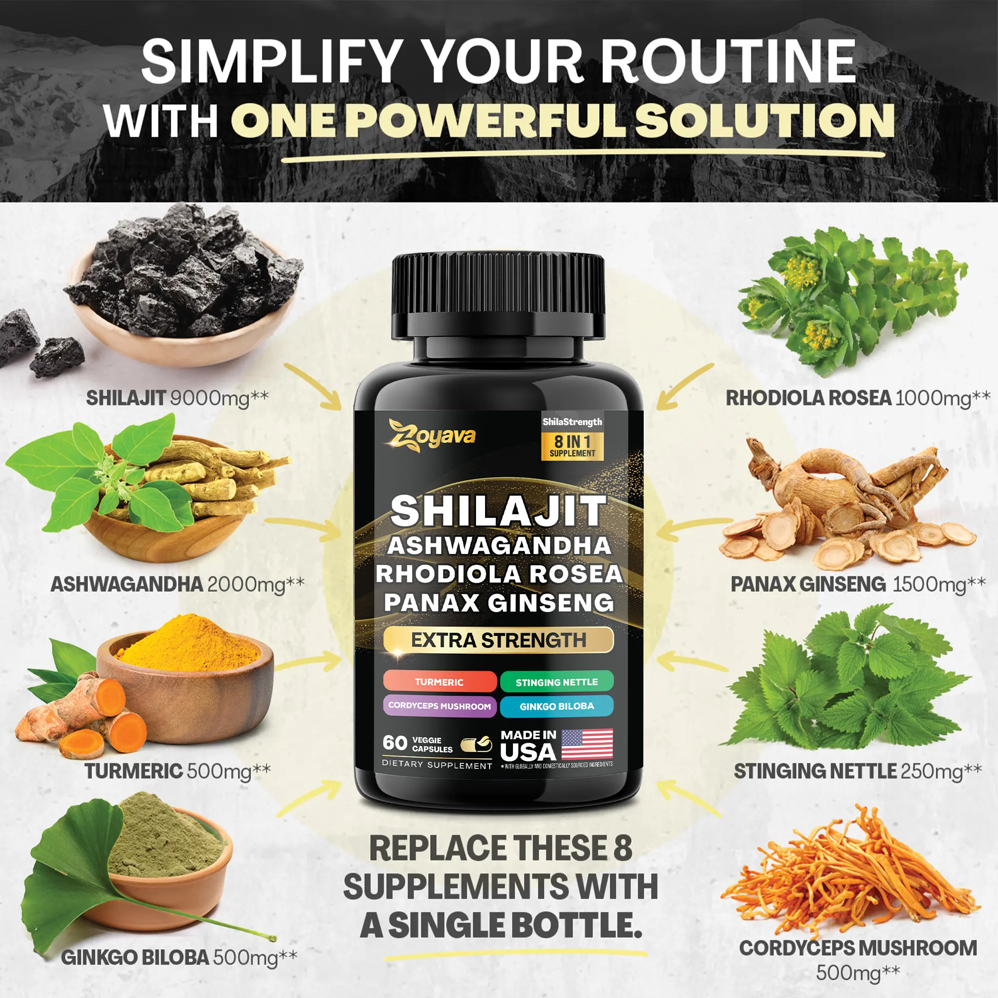 Elevate your energy levels with Zoyava ShilaStrength Supplement Pure Himalayan 9000MG, a top-quality wellness supplement crafted with 7+ super ingredients to provide you with extra strength and high potency support.