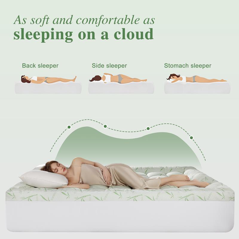 Crafted with premium bamboo-blend fabric, this topper offers exceptional breathability and moisture control. It helps regulate body temperature and keeps your bed feeling fresh, soft, and cozy all night long.
