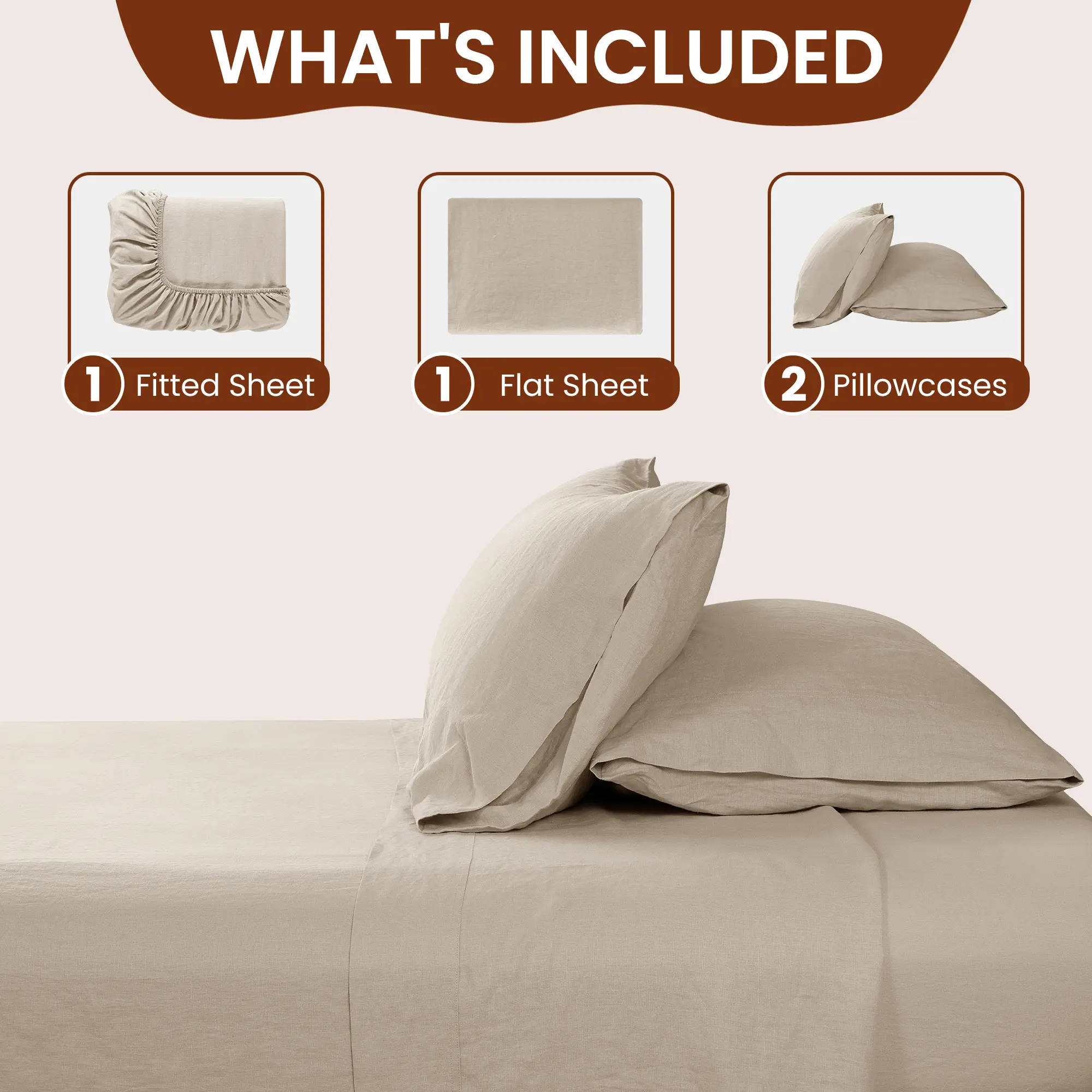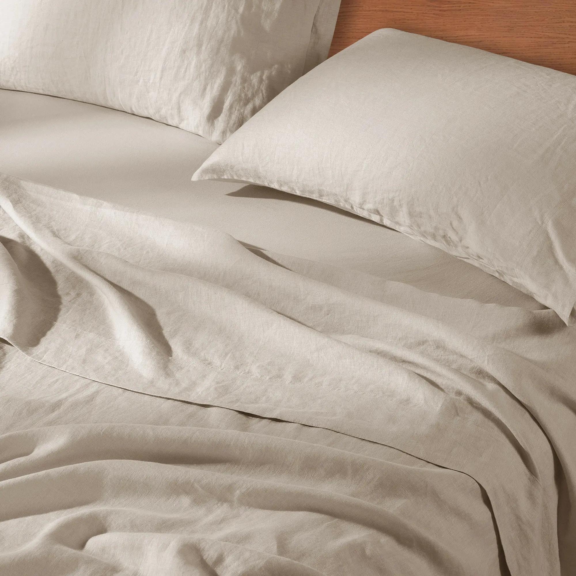 The 55/45 linen-cotton blend grows softer with each wash while staying strong and shape-retaining — no need for ironing to keep its natural charm.