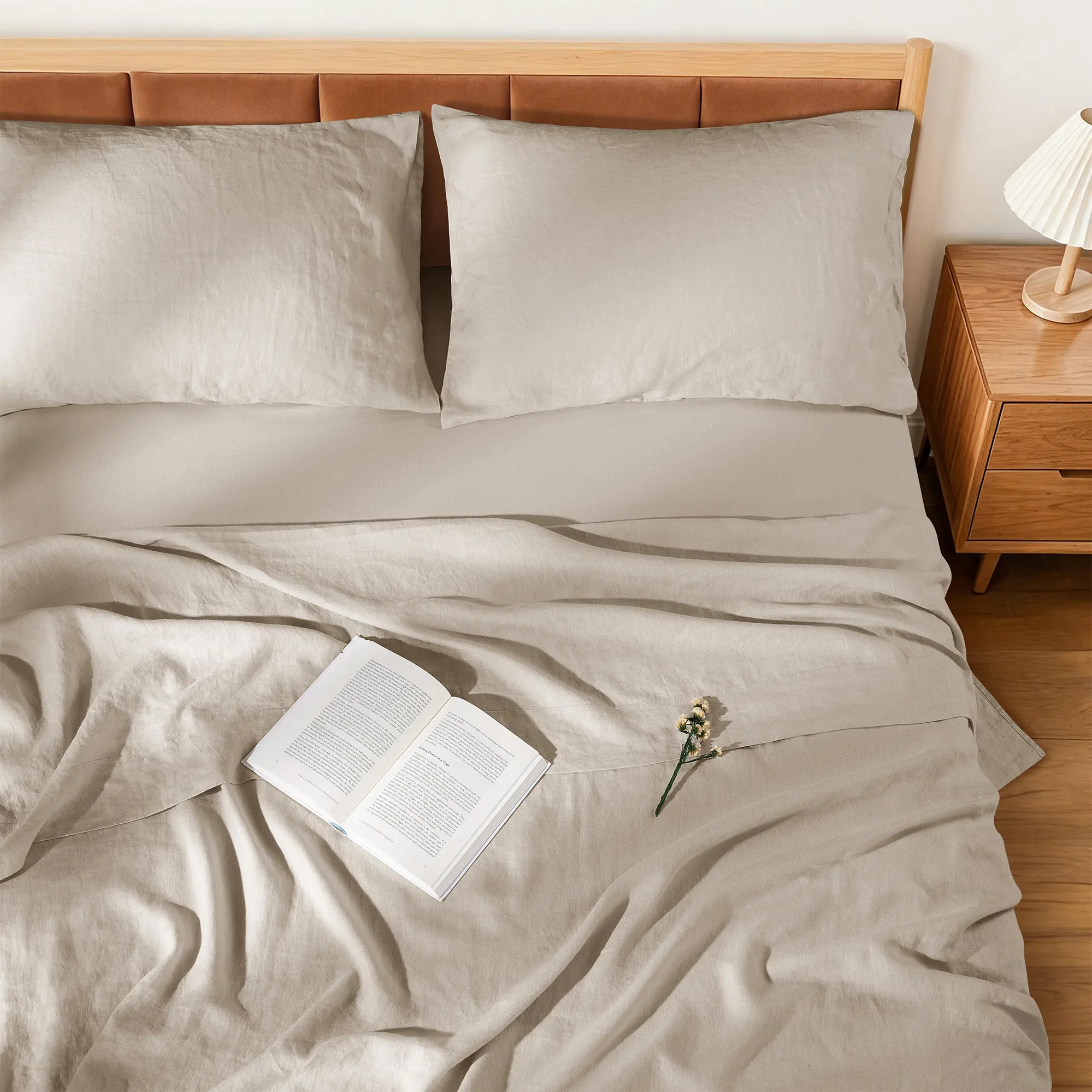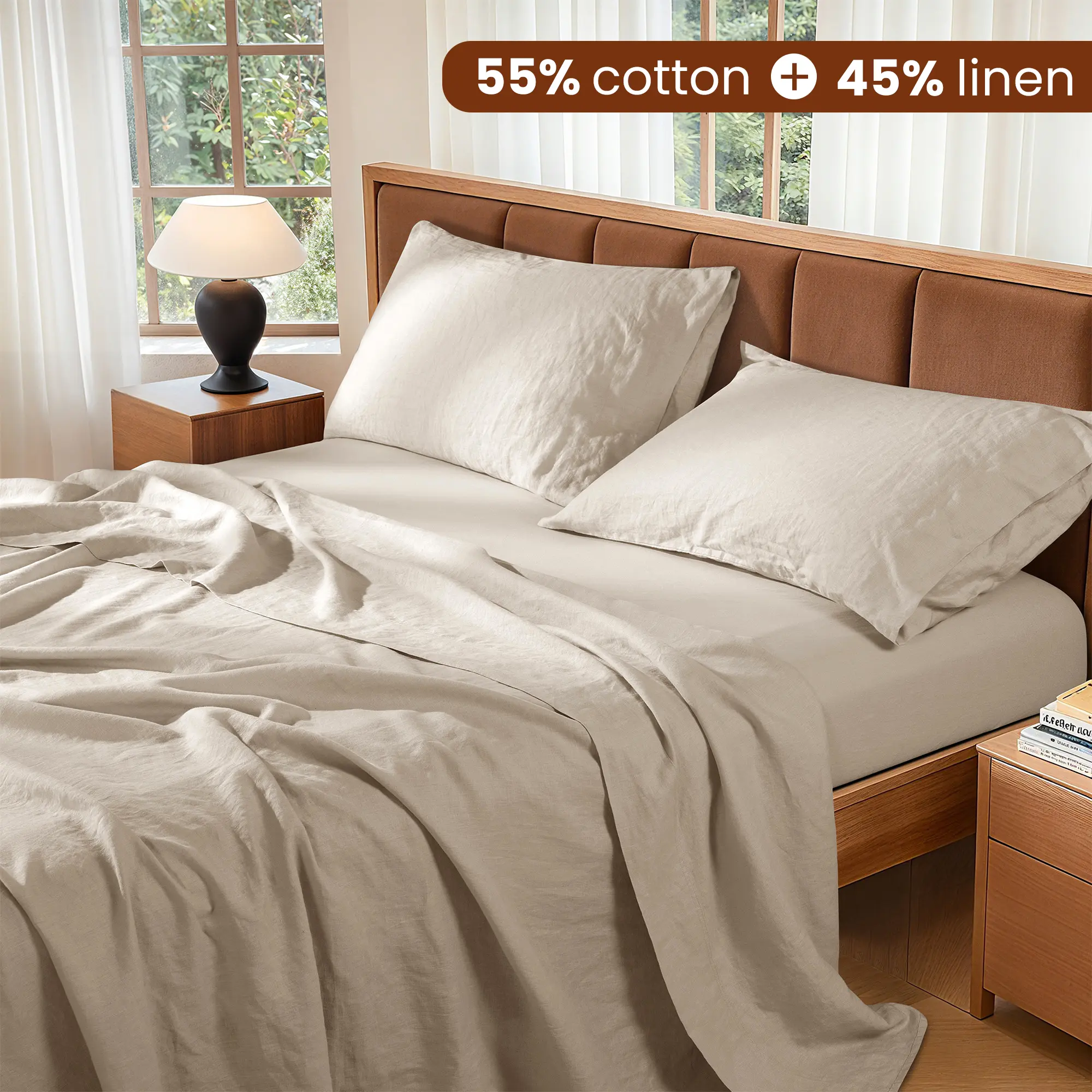 Blending the gentle softness of 55% cotton with the airy lightness of 45% linen, this set delivers natural comfort that keeps hot sleepers cool and cozy through every season.