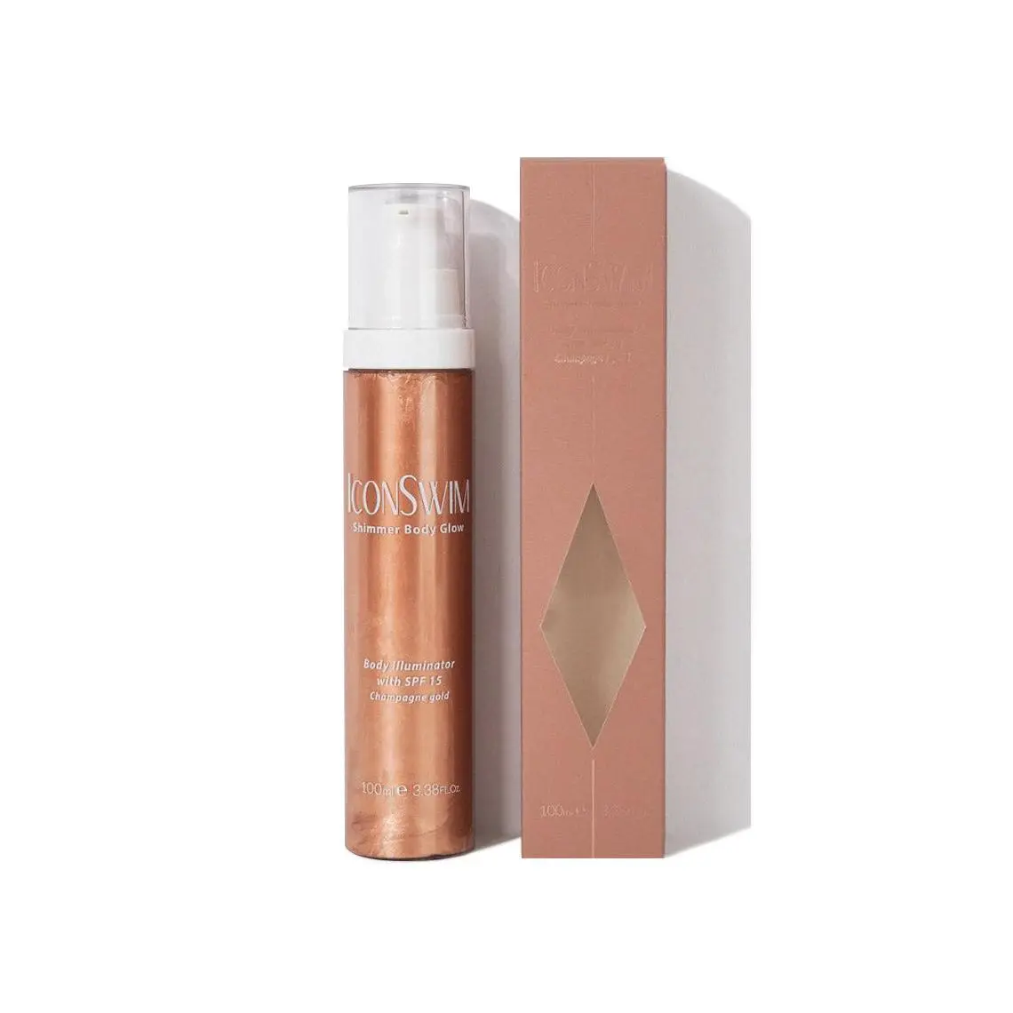 Our shimmer illuminator is the ultimate body glow that leaves your skin moisturized with high shine. SPF 15 included. Product is waterproof. Only 30% of product will be removed when entering water. When exiting water, allow skin to air dry.