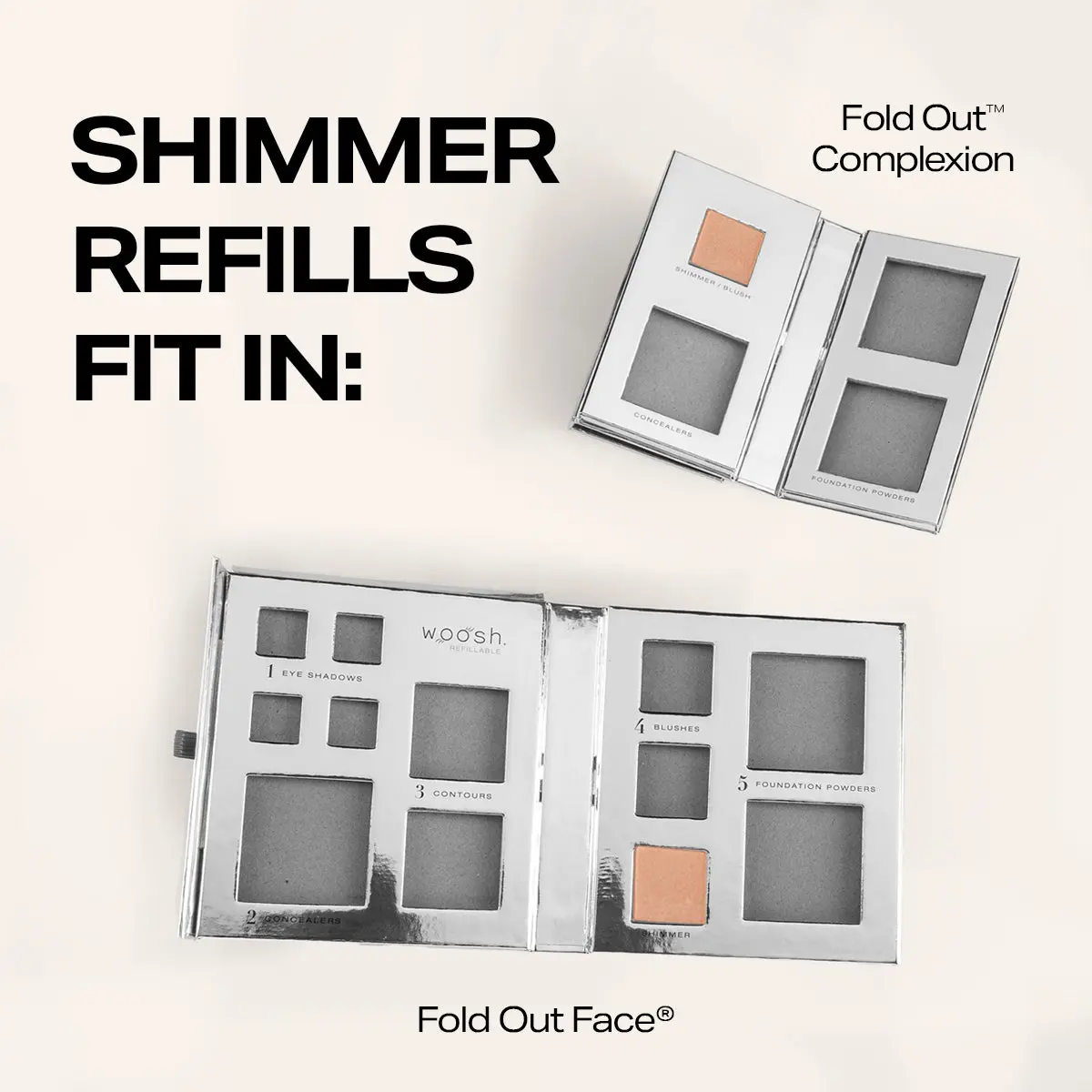 Get a dewy, natural-looking glow with this clean beauty highlighting powder. Fits in Fold Out Face® Refillable palette and Fold Out Complexion®.
