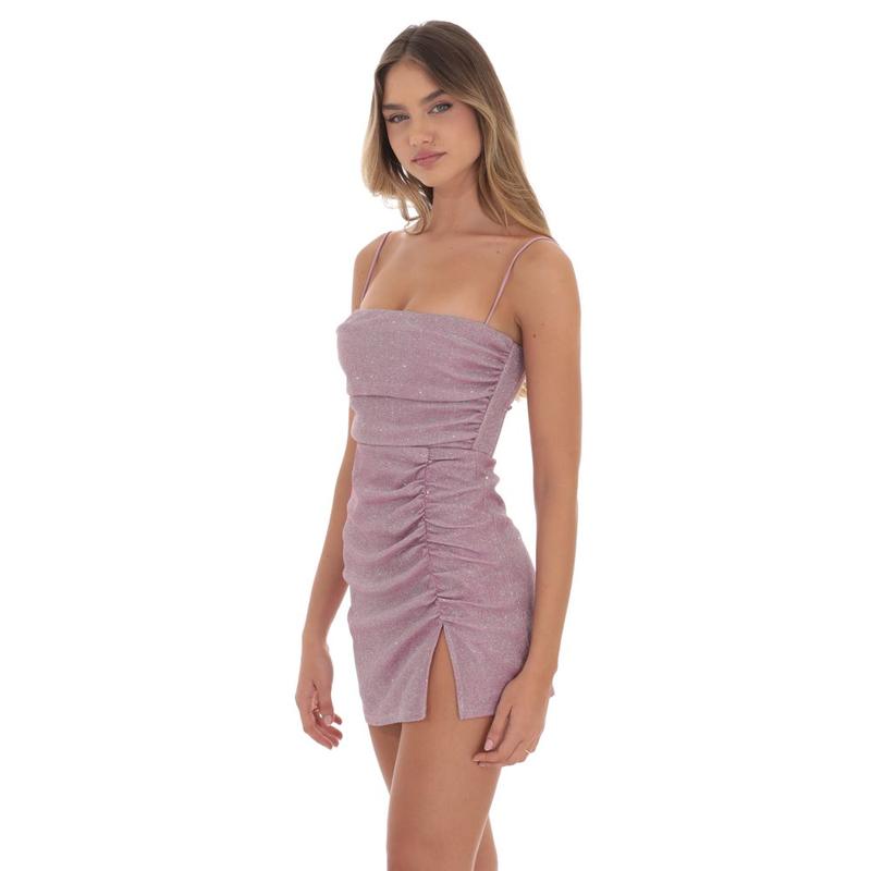 5. Shimmer Ruched Bodycon Dress in Mauve Pink