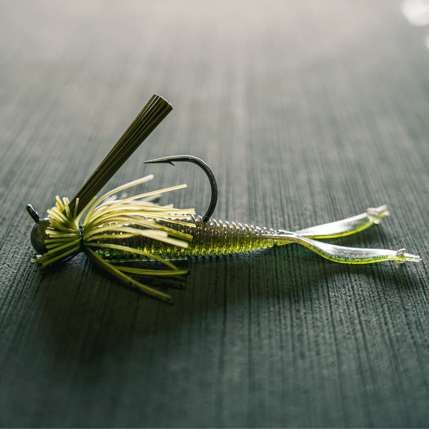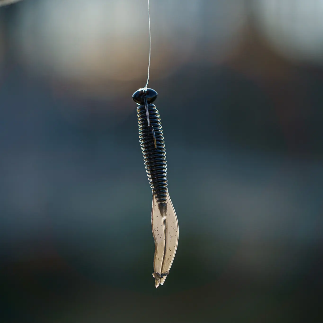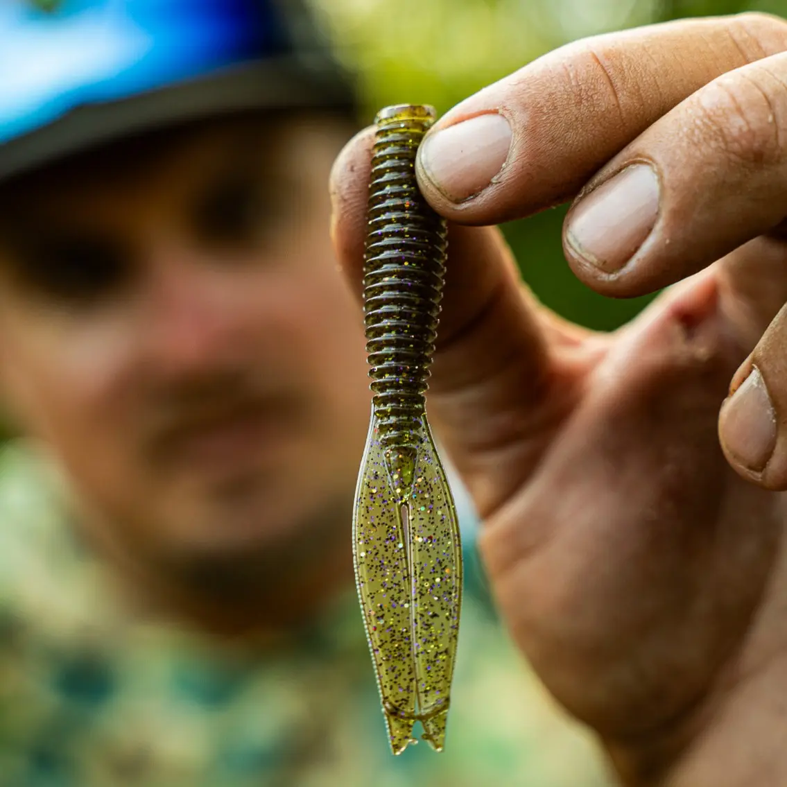 A new staple in finesse fishing, the Shindig 3.2 delivers subtle, lifelike action with a ribbed body and compact twin appendages that move with the slightest motion. Designed to pair flawlessly with the Divine Ned Football Head, it also shines as a finesse trailer, drop-shot bait, or forward-facing sonar option. Simple yet deadly effective, the Shindig keeps the finesse party going in any condition.