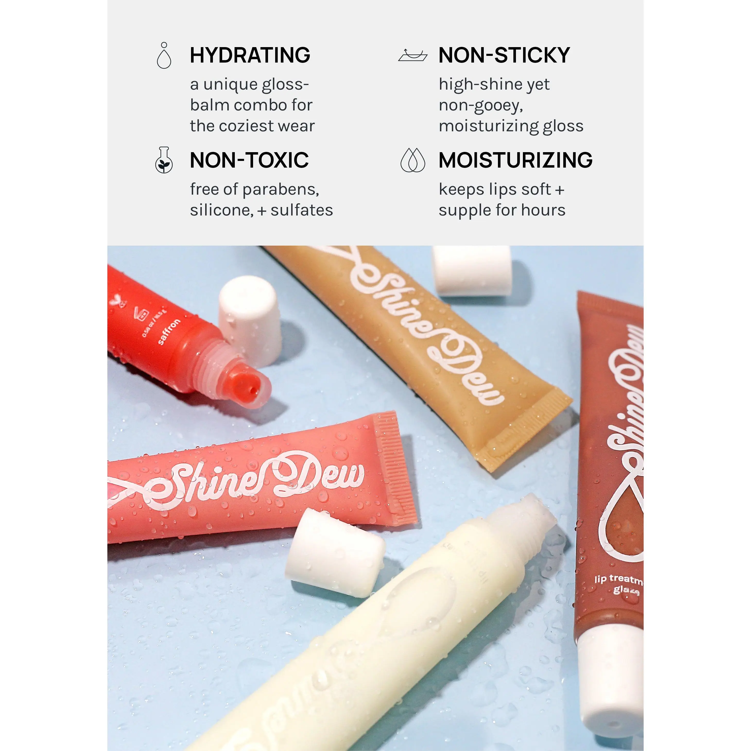 Get squeezy with Shine Dew Lip Treatment Glaze! A conditioning gloss made with beeswax that is ultra-hydrating + non-gooey for soft + supple lips that lasts for hours.