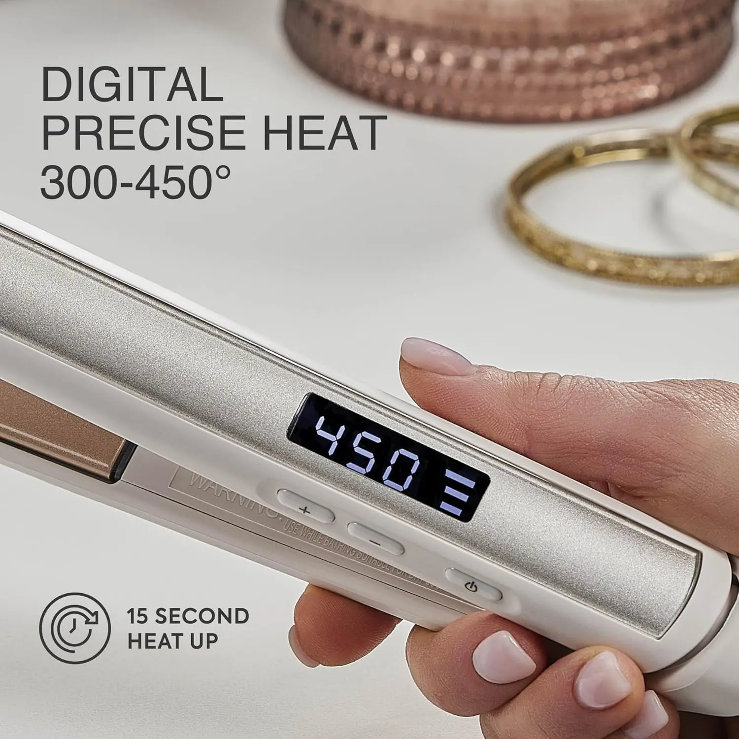 ·PRECISION HEAT CONTROL: Style safely and smartly! LCD pulses during heat-up, then shows 1–3 bars when ready. Customize for your hair type or activate Turbo Mode to reach 450°F. See user manual for heat settings chart & limited 3-year warranty info.