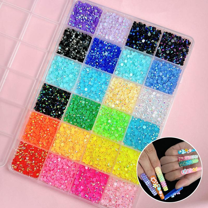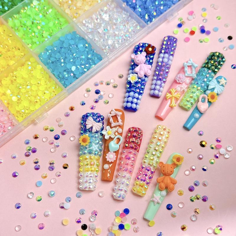 1Box Shiny Half Round Resin Rhinestones Nail Charms Colorful Mini Flat Bottomed Rhinestones Nail Decorations Diy Nail Art DIY Cup Nails Accessories Kits