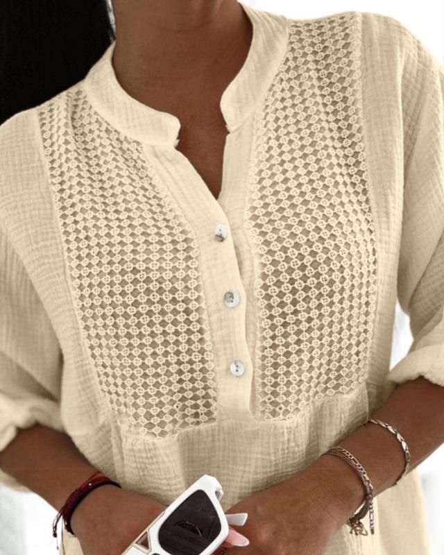·Hollow Out Detail for a Trendy Twist: Subtle hollow-out details along the fabric add a touch of contemporary edge, enhancing the blouse's overall texture and creating a stylish, breathable design. This feature gives the top a modern, fashionable appeal without compromising on comfort.