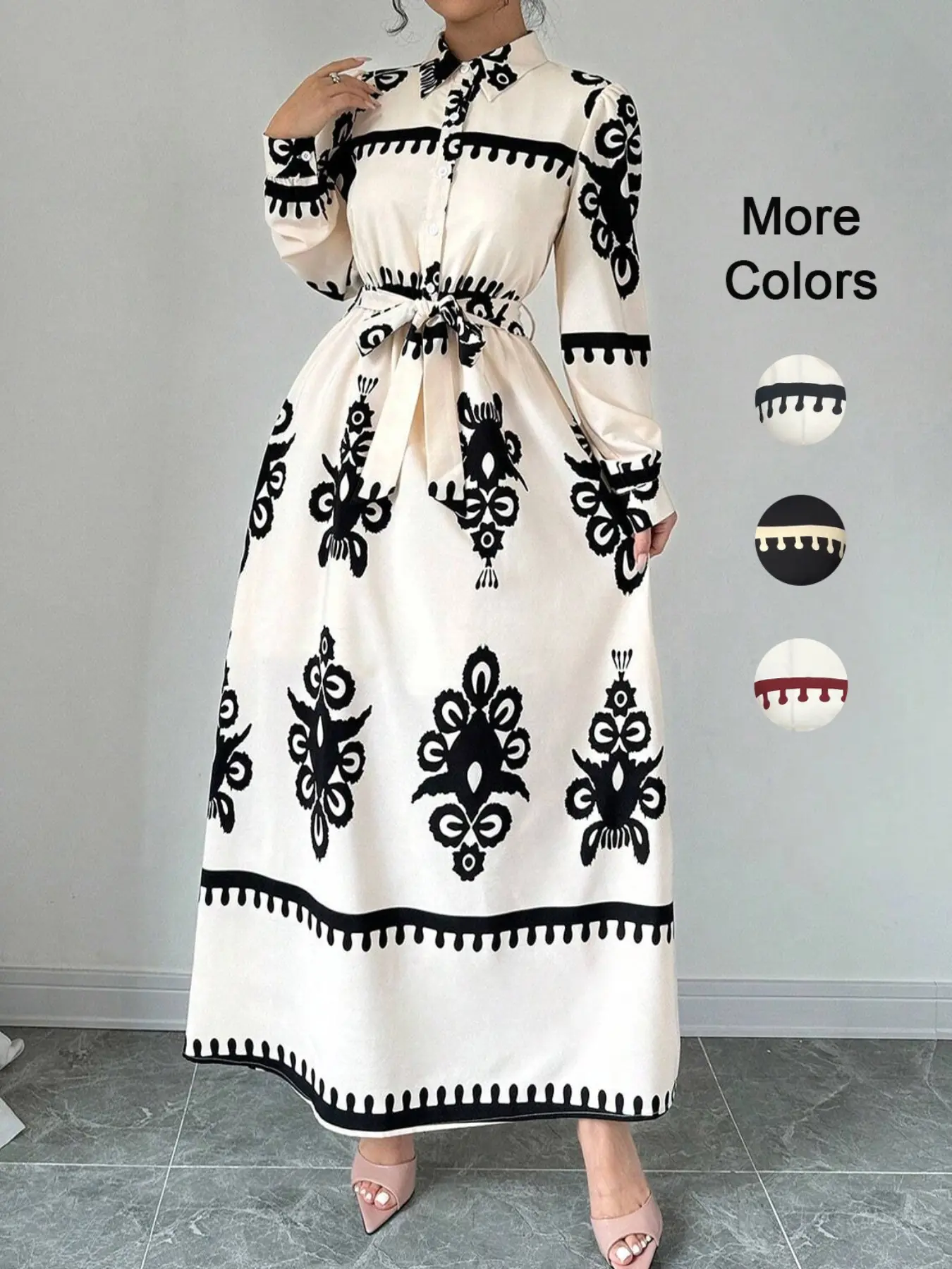 Really beautiful and fun dress with a belt! No pockets unfortunately! Goes great with everything.