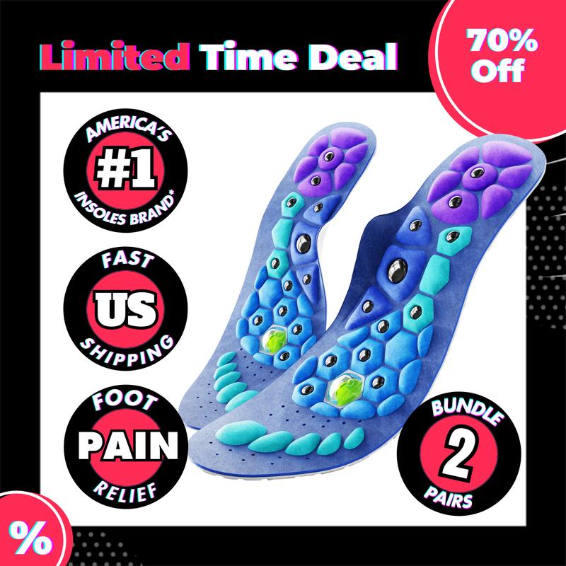 Akusoli Insoles are engineered to reduce foot pain, standing fatigue, and discomfort, making them the perfect solution for men and women who need all-day support. Whether you have high arches, flat feet, plantar fasciitis, or are just on your feet for long hours, Akusoli Insoles provide the relief and comfort you need. Inspired by Japanese acupuncture techniques, these insoles target key pressure points to improve circulation, reduce swelling, alleviate neuropathy, and even help reduce anxiety. Plus, they're designed to help reduce migraines and support weight loss by relieving stress on your feet and joints.