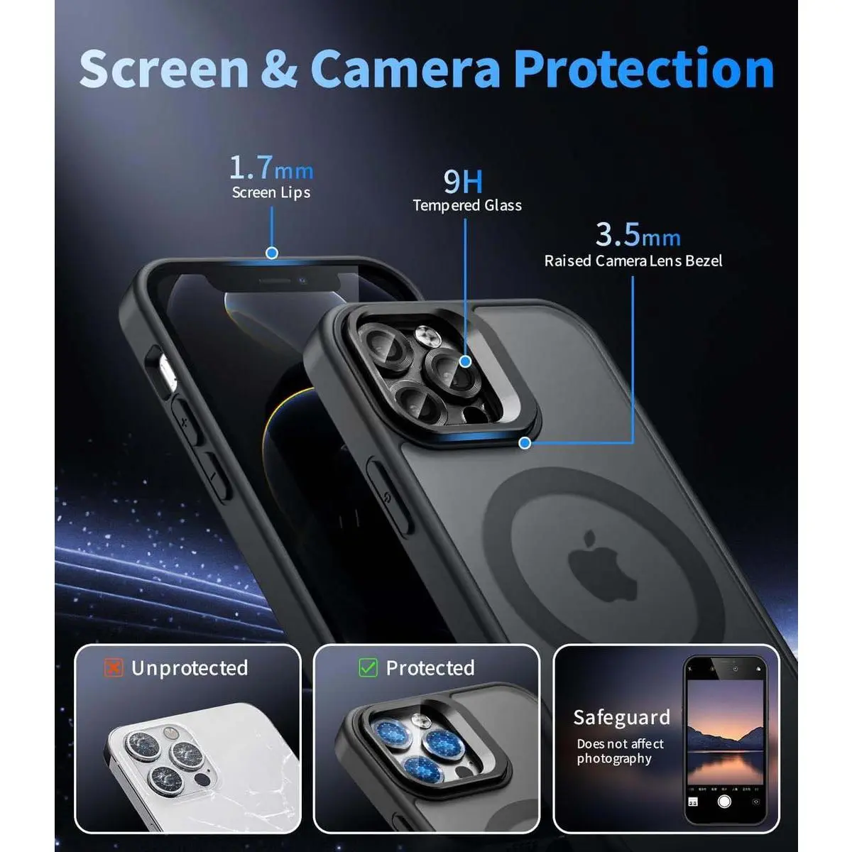 🛡️This full-coverage camera lens protector prevents scratches and impacts.It protects all three lenses and prevents dust from entering, ensuring optimal camera performance.It is perfect for iPhone 16 Pro Max, 15, 14, 13, 12 Pro.Use this protective case to keep your camera in pristine condition