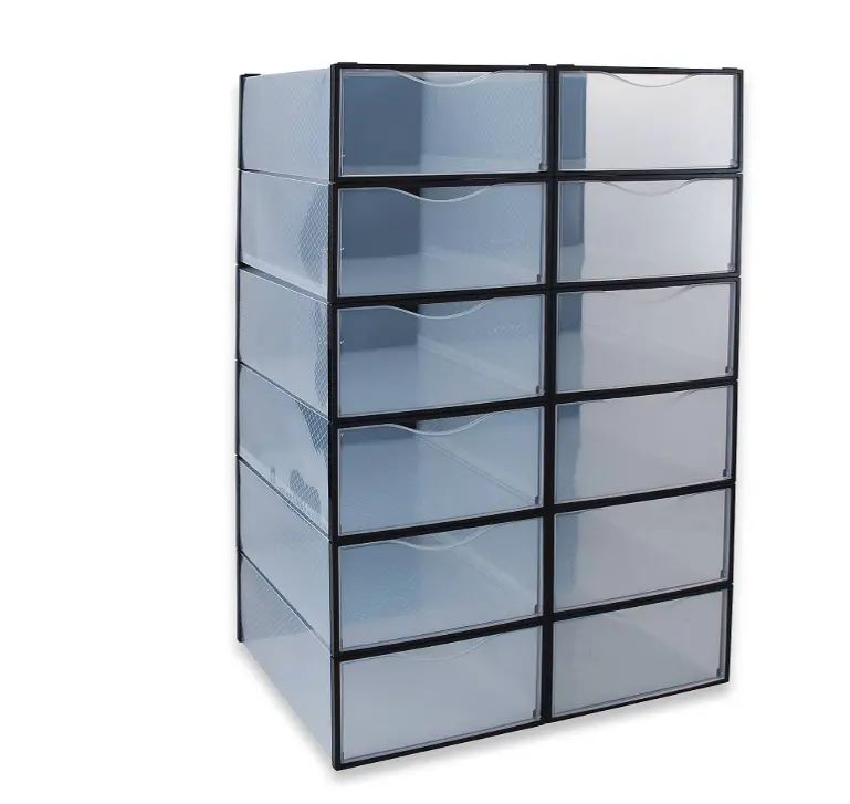 Introducing our Drop Front Stackable Boxes, designed to keep your shoes or any other items organized and easily accessible. This set includes 12 transparent boxes, allowing you to quickly identify contents and keep them organized.