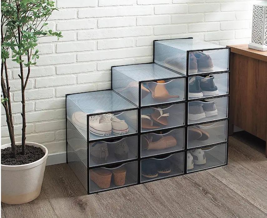 Keep your shoes or any other items organized and easily accessible with these practical and transparent storage boxes.