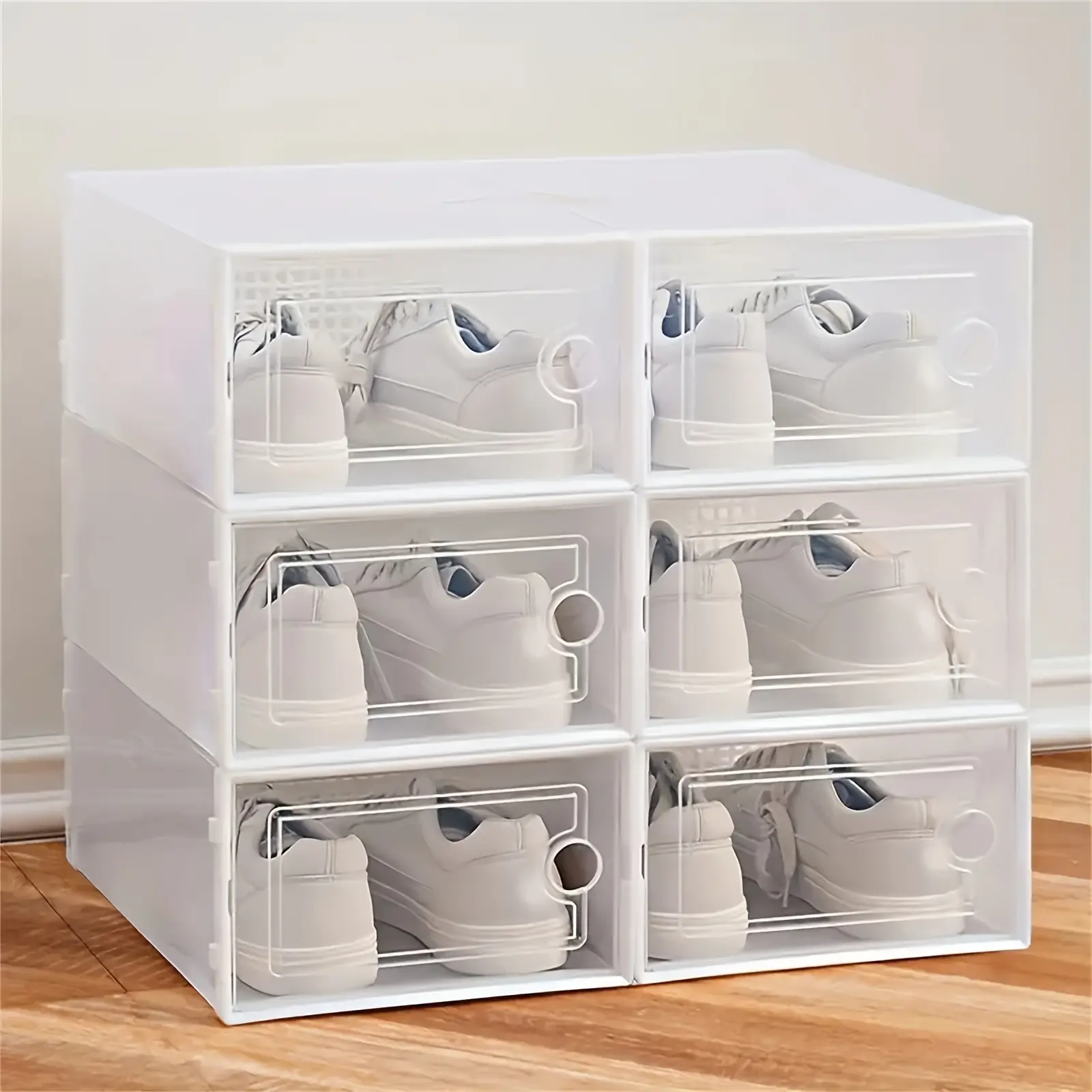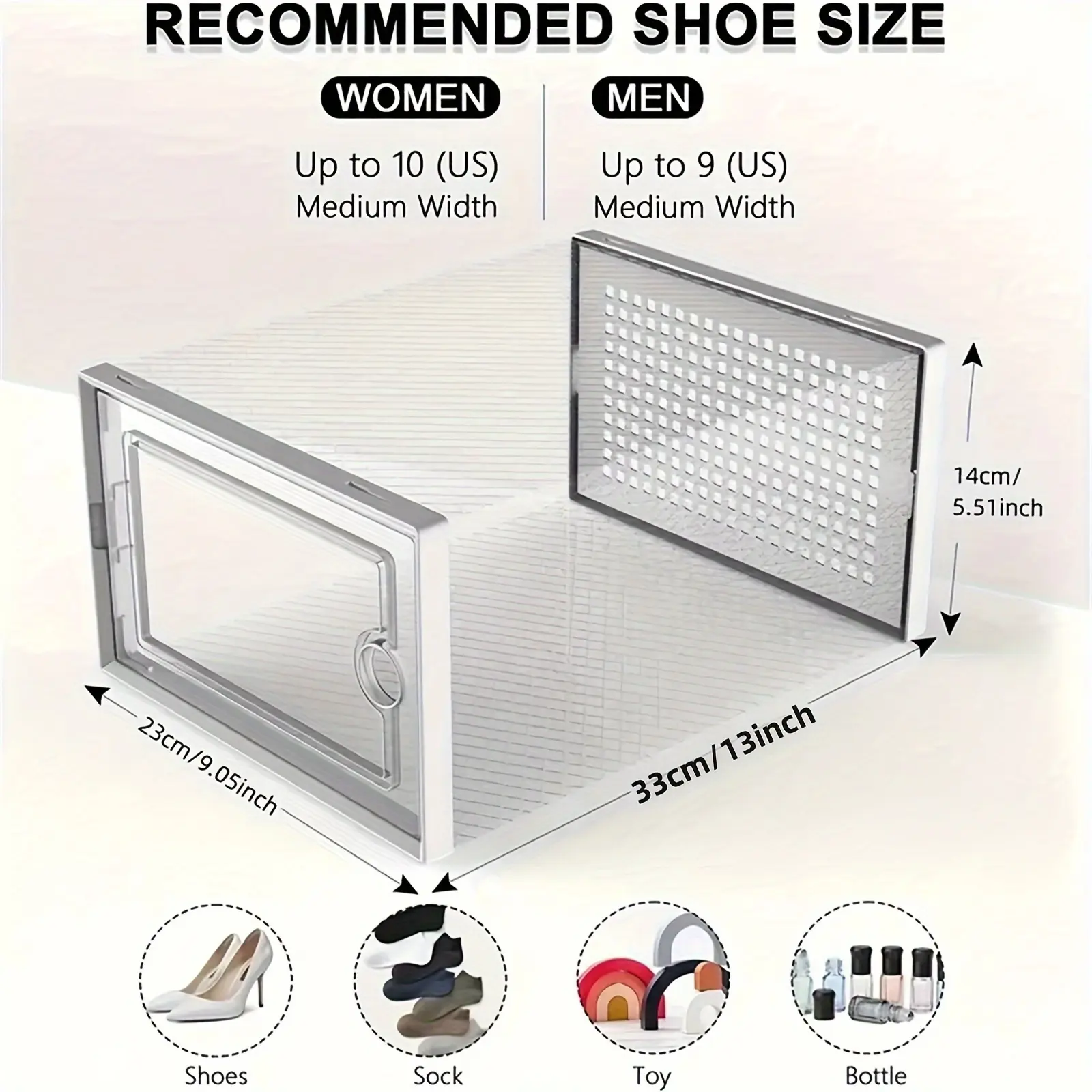 6/12pcs X-Large Shoe Storage Boxes Organizers for Closet, Fit Size 11, Clear Plastic Stackable Sneaker Containers for Entryway, Space Saving Shoe Rack Holder, Substitute for Drawer Organize Unit