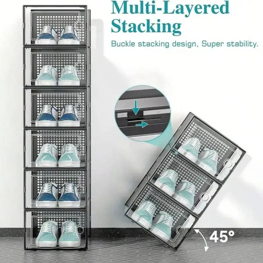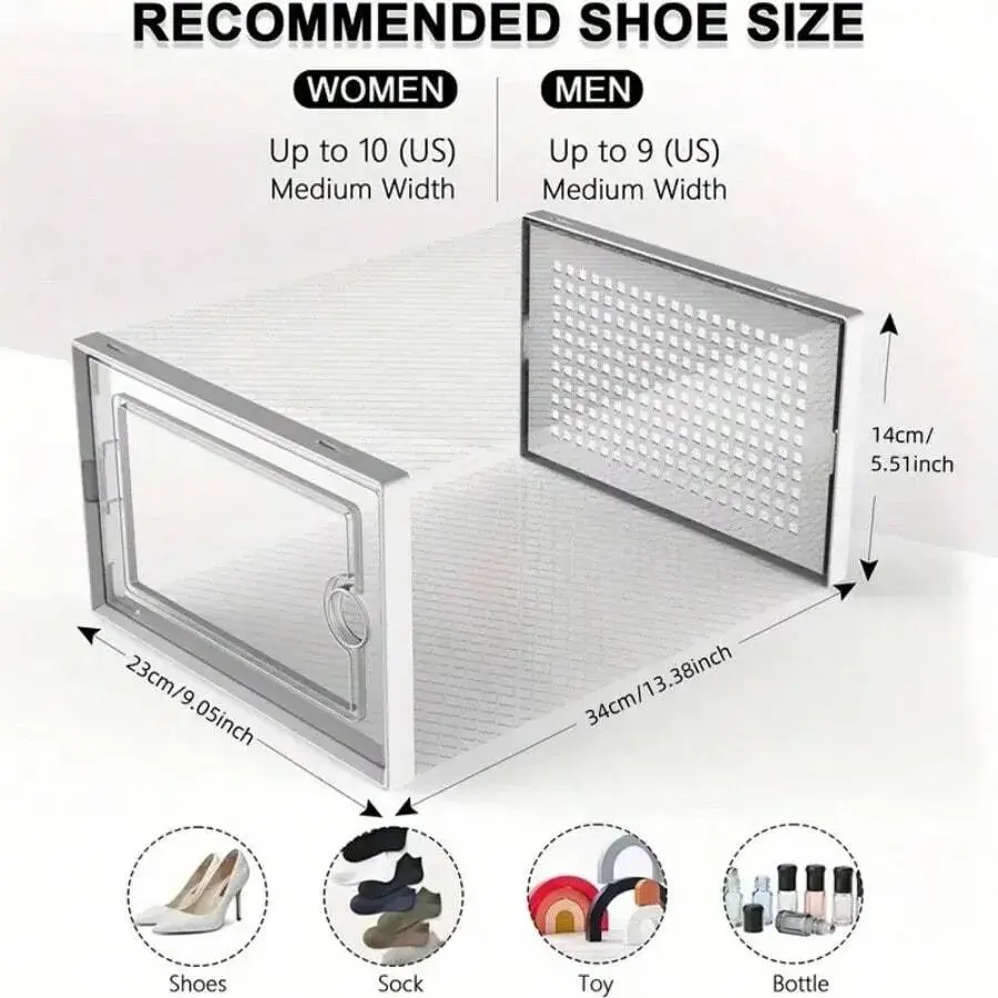 These shoe containers are a must-have for anyone looking to enhance their storage space. With their durable plastic construction and practical design, they provide a convenient way to keep your shoes neatly arranged. Order now and transform your storage area today!