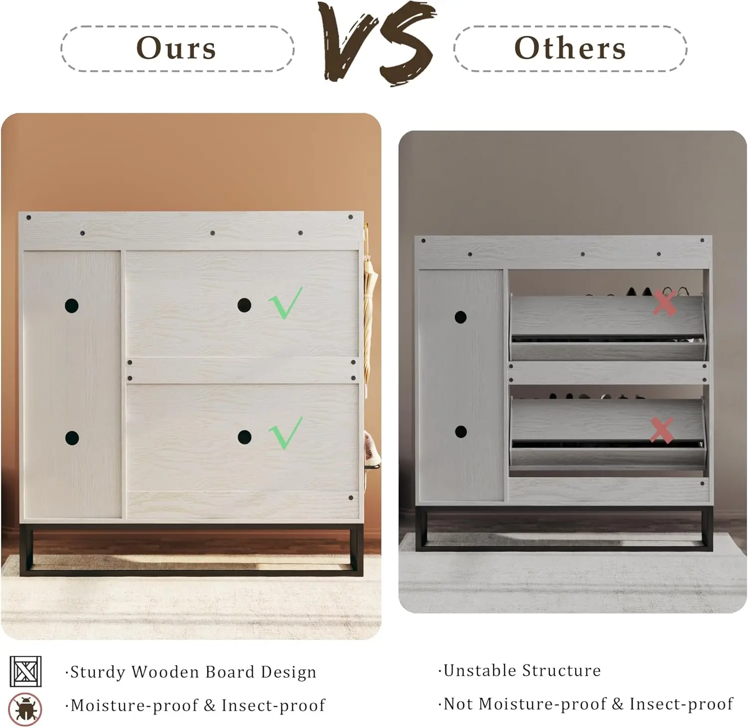 ·Safe & Reliable Quality: Crafted from premium MDF and reinforced with a robust steel frame, this shoe cabinet storage for entryway long-lasting stability. It also features an anti-tip device to attach it to the wall, preventing tipping and providing child safety.