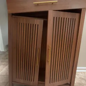 It looked pretty for 2 weeks until it completely fell apart. We tried to move it a few inches & the bottom shelf fell out, which caused all the other shelves to fall and the legs to buckle. Also, the drawer never fully closed. We’ve put together furniture like this before with no issues. Flimsy.